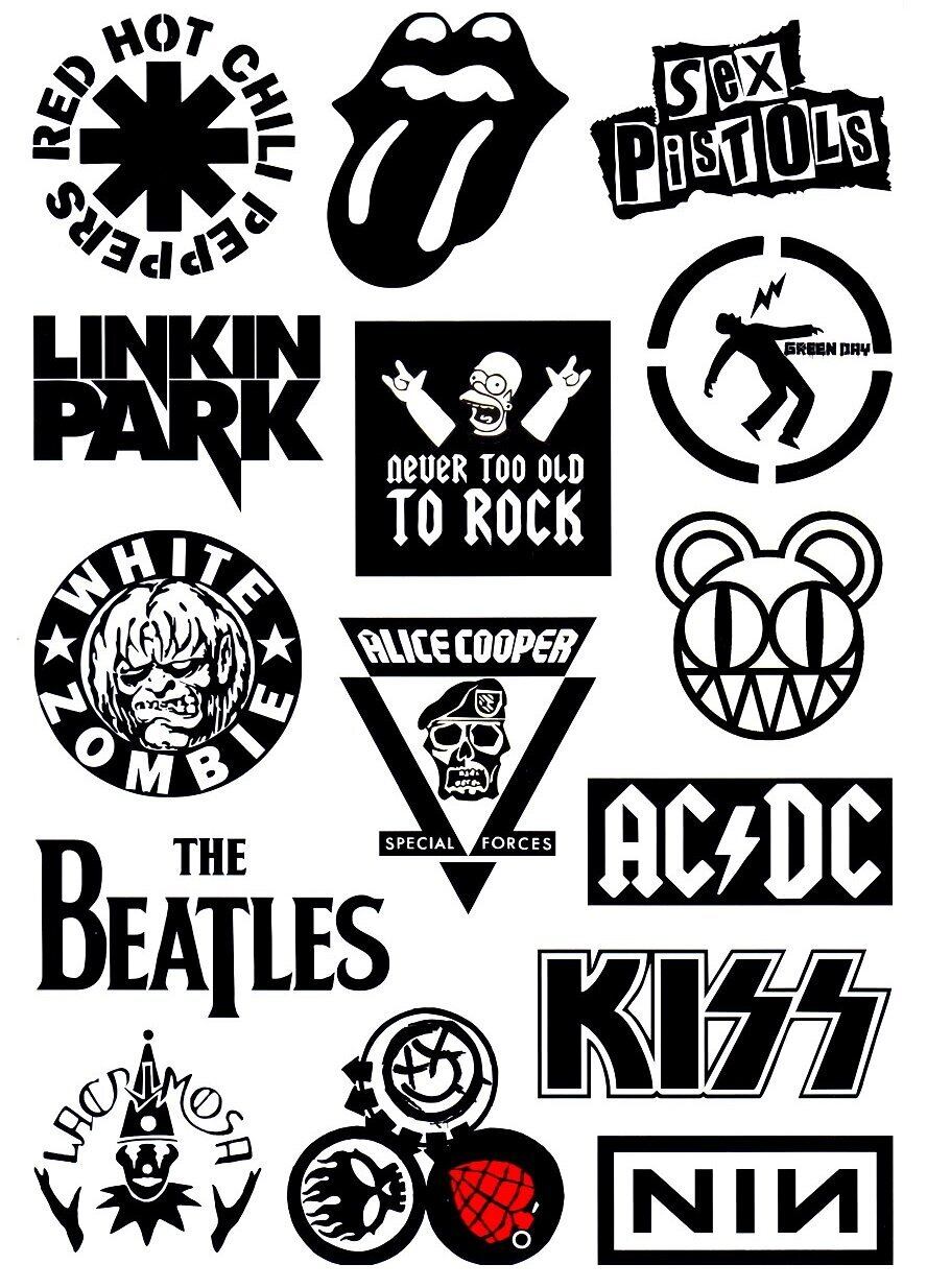 【新着商品】【ギター・楽器・タブレット等のカスタマイズに!】 ロック・ポップス・メタル 系 洋楽 音楽 バンド ステッカー 艶あり・防水加工・型切り出しシール (カラー・モノクロ 2シートセット) | gsmshop