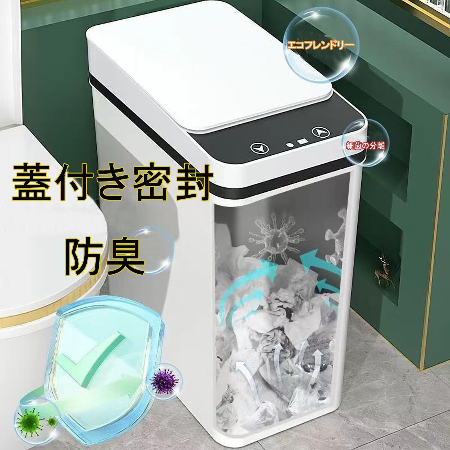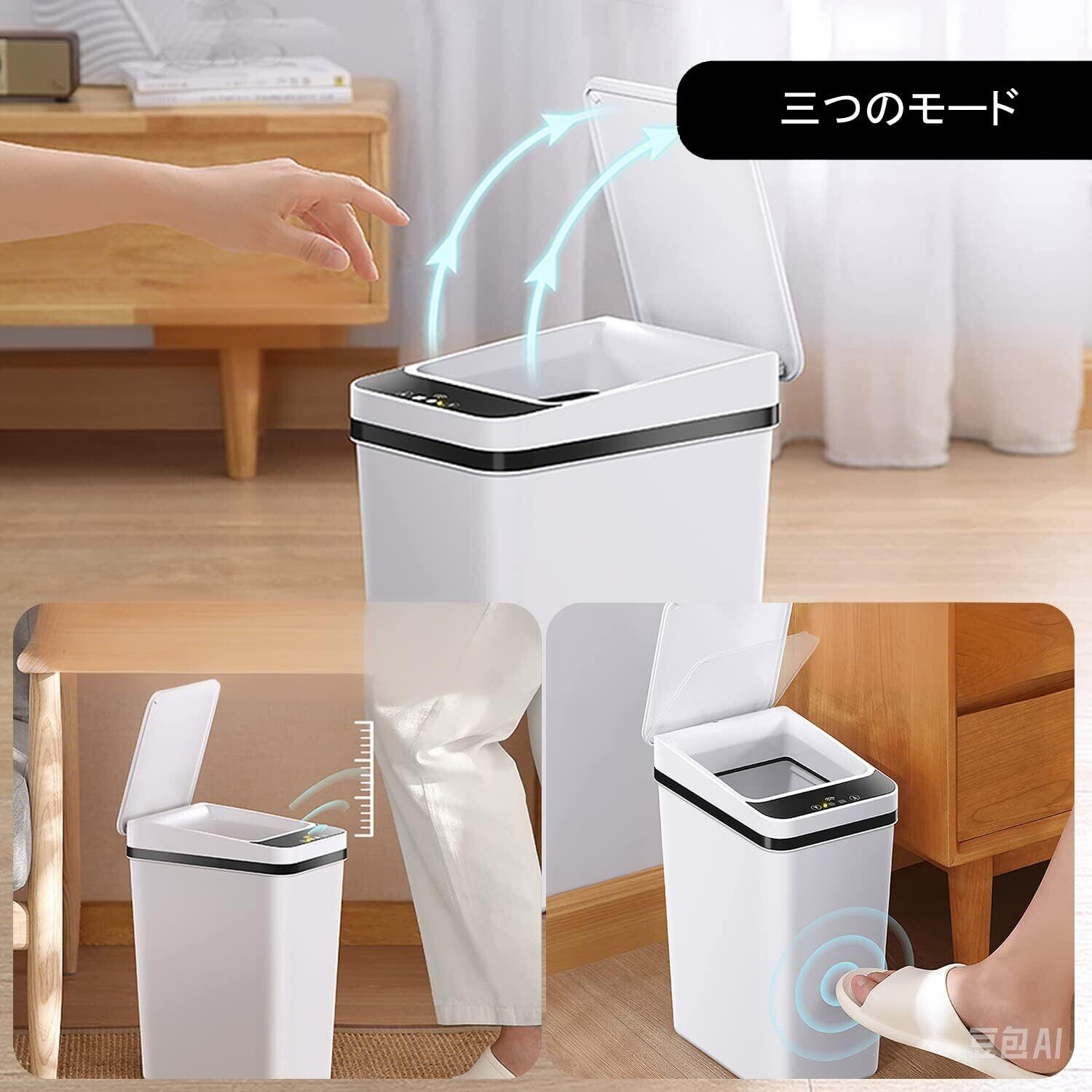 ゴミ箱 自動 9l センサー 電池式 蓋付き ダストボックス 幅15.8×奥行23.5×高さ32cm ゴミ箱 おしゃれ 袋が見えない センサー付き ごみ箱 開けっぱなし可能 薄型 生活防水 省スペース リビング 洗面所 トイレ オフィス キッチン(ホワイト)
