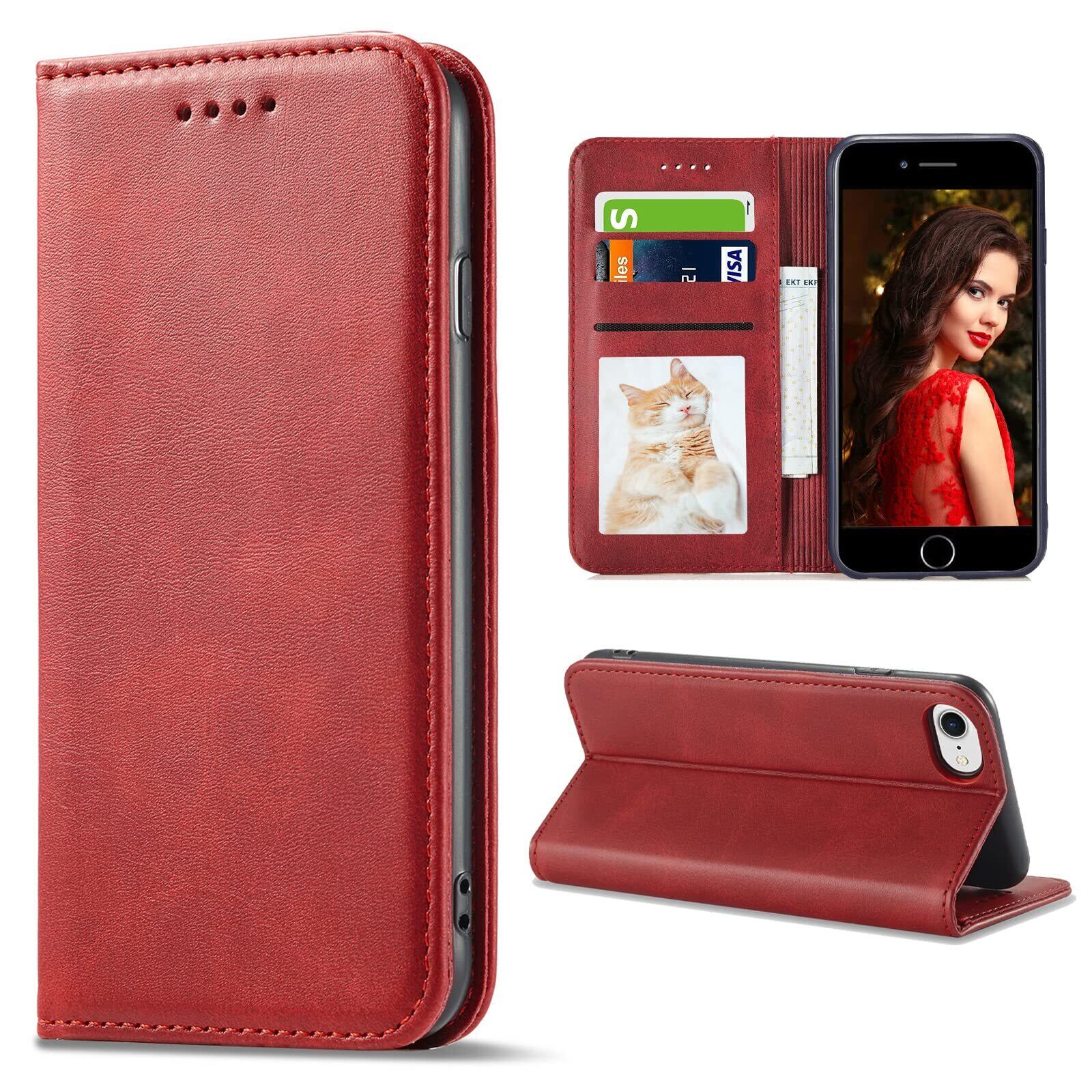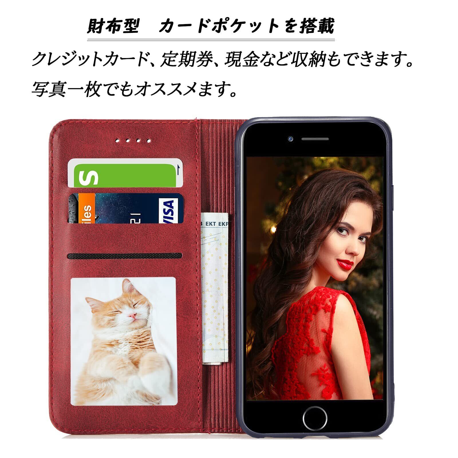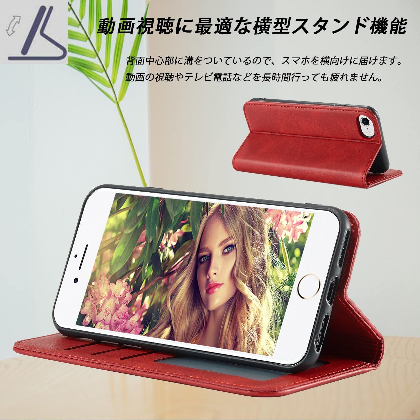 iPhone SE ケース 第3世代 iPhone SE(第2世代) ケース手帳型 iPhone7手帳ケース iPhone8手帳型 アイフォン7 手帳 スマホケース se3 カバー iPhone SE 第3世代 あいふぉん手帳型ケース カード収納 iphone case マグネット内蔵 スタンド機能 耐衝撃 薄型 軽量 防水 耐摩擦 シンプル 男女兼用 (iPhone7 / 8 / se 2020 / se 2022 4.7inch対応) レッド