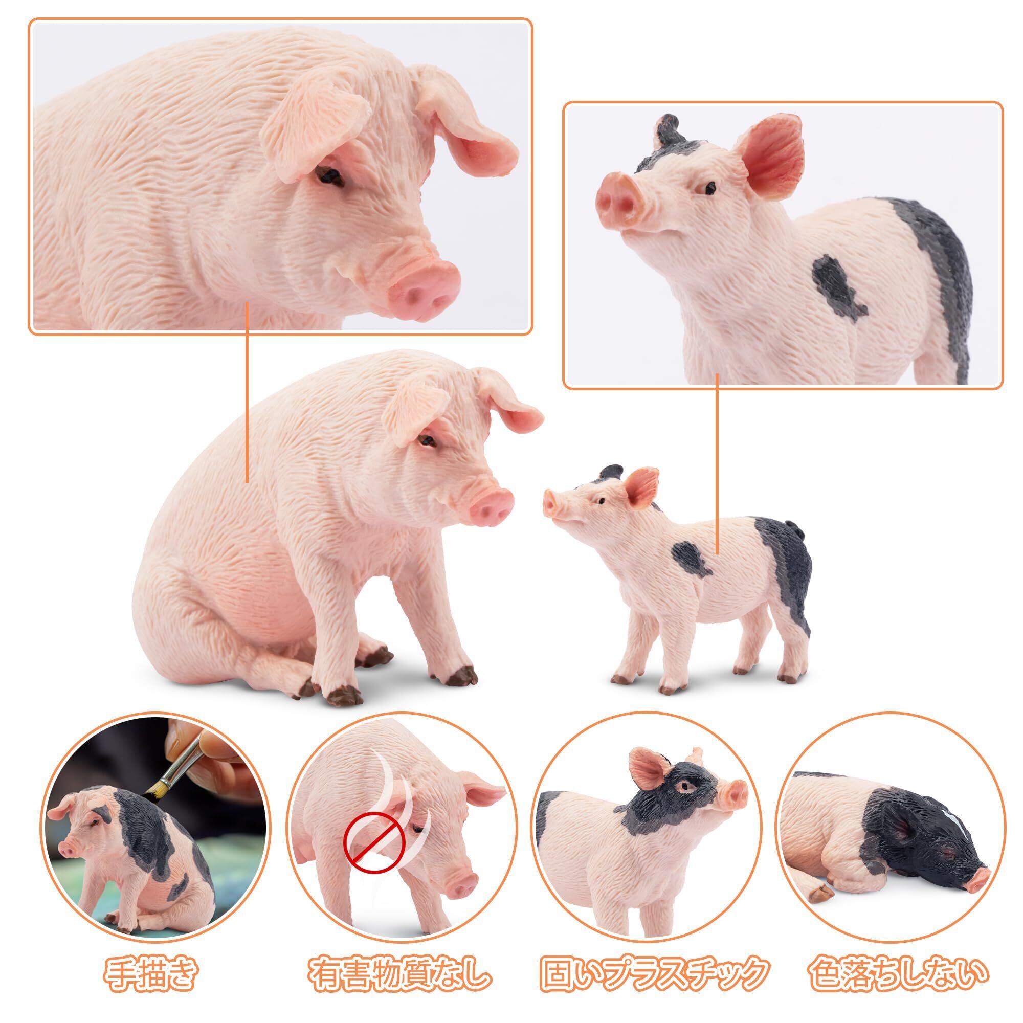 リアルなブタフィギュア:ハイシミュレーション、手描いた動物フィギュア、動物たちの色や表情が生き生きとしています。室内にいても、動物のリアルな姿が見えます。動物の模型がよくデザインできていて、簡単に倒れません。人は安心して遊べます。色や形が本物そっくりなので、是非動物愛好者にお勧めします。
