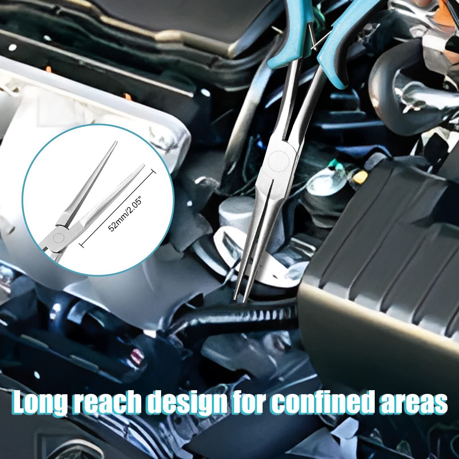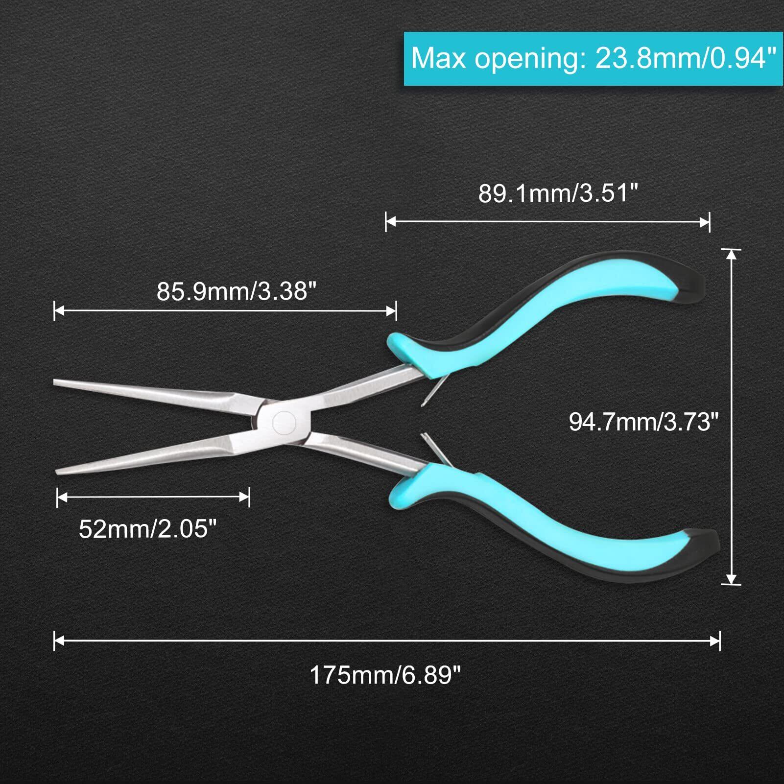 特徴:ロングリーチデザインにより、限られたエリア/狭いスペースへのアクセスが可能になり、顎は歯がなく滑らかで、アイテムを傷つけません。ダブルリーフスプリング式ハンドルにより、握りやすく、手の疲労を軽減します。プライヤー先端直径約1.7~2.0mm / 0.07-0.08"。