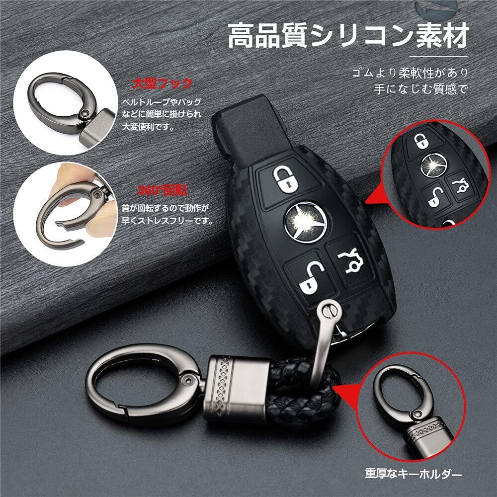 ベンツキーケース, キーカバーベンツキーホルダーシリコン製炭素調 ベンツの車 ベンツ Cクラス/C200L/glc260/glk300/gla200/ A B C E クラス CLA GLA GLC GLE 等に適用ベンツ (カーボン調)