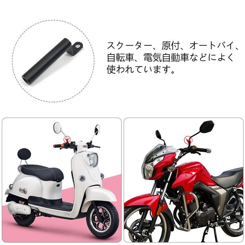 【様々な用途で使用可能 】スクーター、原付、オートバイ、自転車、電気自動車などによく使われています。シンプルかつ丈夫な作りなので、幅広い車種に対応しております。取り付けもお手軽にボルトでミラーに共締めするだけですぐにお使い頂けます。