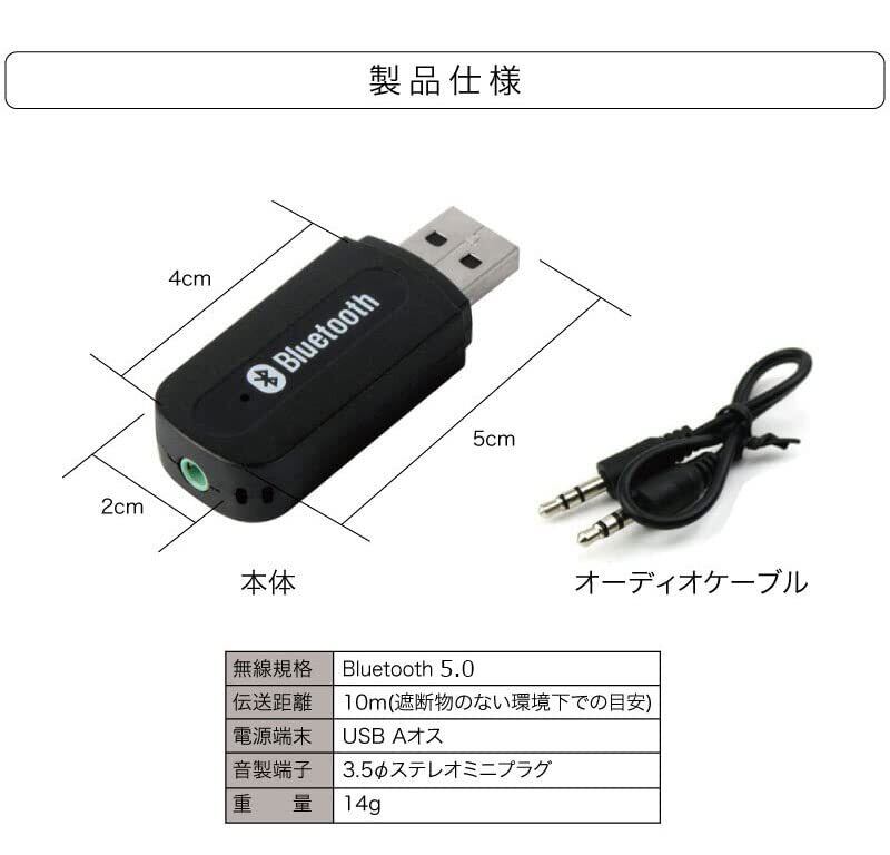 5、【適合規格】:Bluetooth Ver5.0 + EDR 対応プロファイル:A2DP V1.2 有効距離:10m 付属品:3.5mmオーディオケーブル