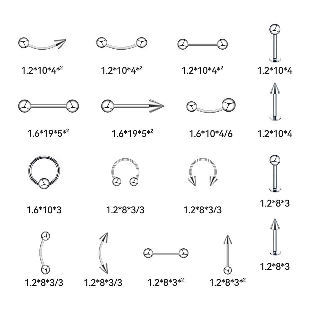 [DFsucces] 舌 眉 唇 腹 へそピアス ステンレス製 ボディピアス ピアス セット 男女兼用 ファッション アクセサリー