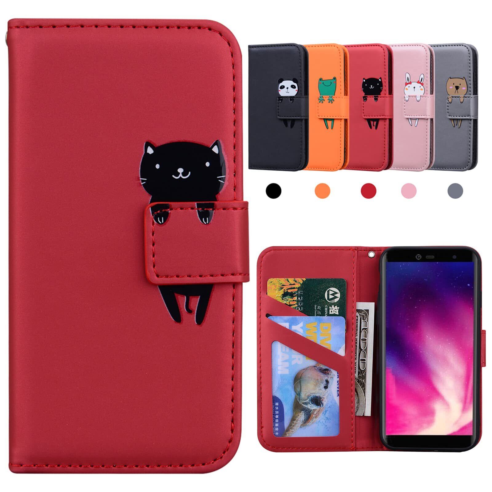Kedic Rakuten Hand ケース 手帳型 楽天Hand ケース Rakuten Hand 5G スマホケース 楽天hand カバー Rakuten Hand 手帳ケース 楽天ハンド ケース 財布型 携帯カバーカードポケットスタンド機能、汗や指紋防止、擦り傷防止 かわいい 動物柄 男女兼用 楽天 Hand 5G 4G 適用 ケース -赤
