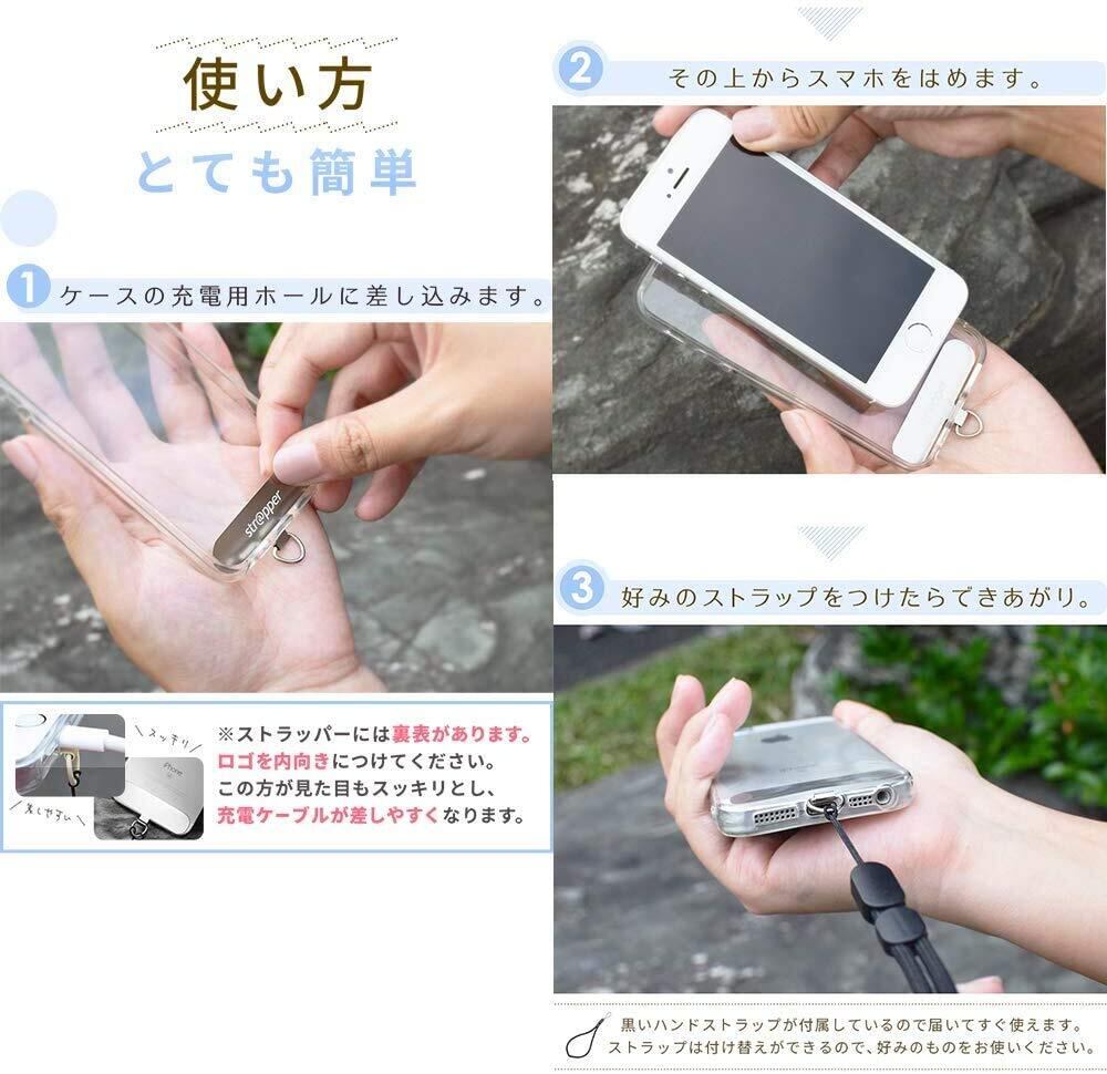 【マットで上品な質感のステンレス製スマホストラップホルダー】ストラッパーはマットで落ち着いた光沢感がスマホの色とぴったりマッチするストラップホルダーです。金属製で切れない/ちぎれないのでスマホ落下防止対策にもぴったりです。