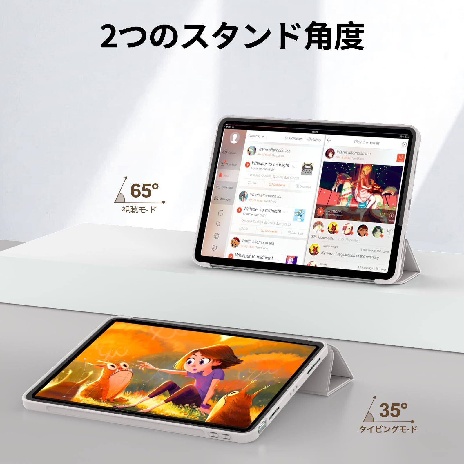 【三つ折り・スタンド機能】 強力なマグネット接続のフロントケースは、iPad Air第7/6/5/4世代インチインチ 2024/2022/2020用の安定したスタンドを作成し、あなたのニーズに合わせて65°角度のビューイングモードと30°角度のタイピングモードを提供します。タイピングや動画視聴などiPadを立ててご使用の際に、とても便利にご利用いただけます。iPadケースは、ビデオ、読書、ウェブなど様々な使用シーンにとても便利で、簡単に折りたたむことはできません。