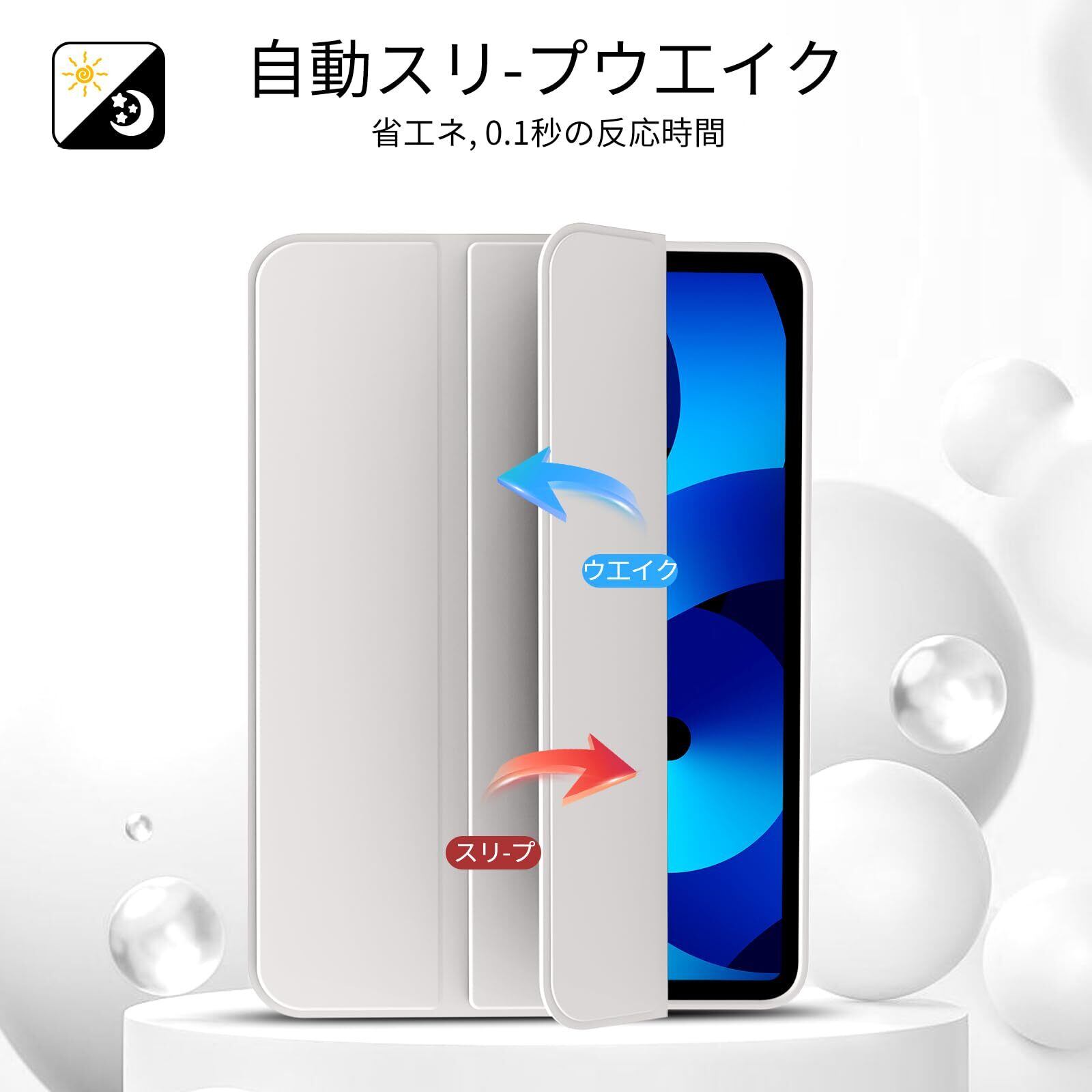 【オートスリープ/ウェイク機能】オートスリープ機能でカバーを開ける閉めることで電源自動的にオン・オフなります、使いやすく、省エネです。バッテリーの消耗を最小限に抑えることが可能です。マグネット内蔵されているためカバンに入れてもカバーが勝手に開けることを心配必要なくしっかり閉められます。