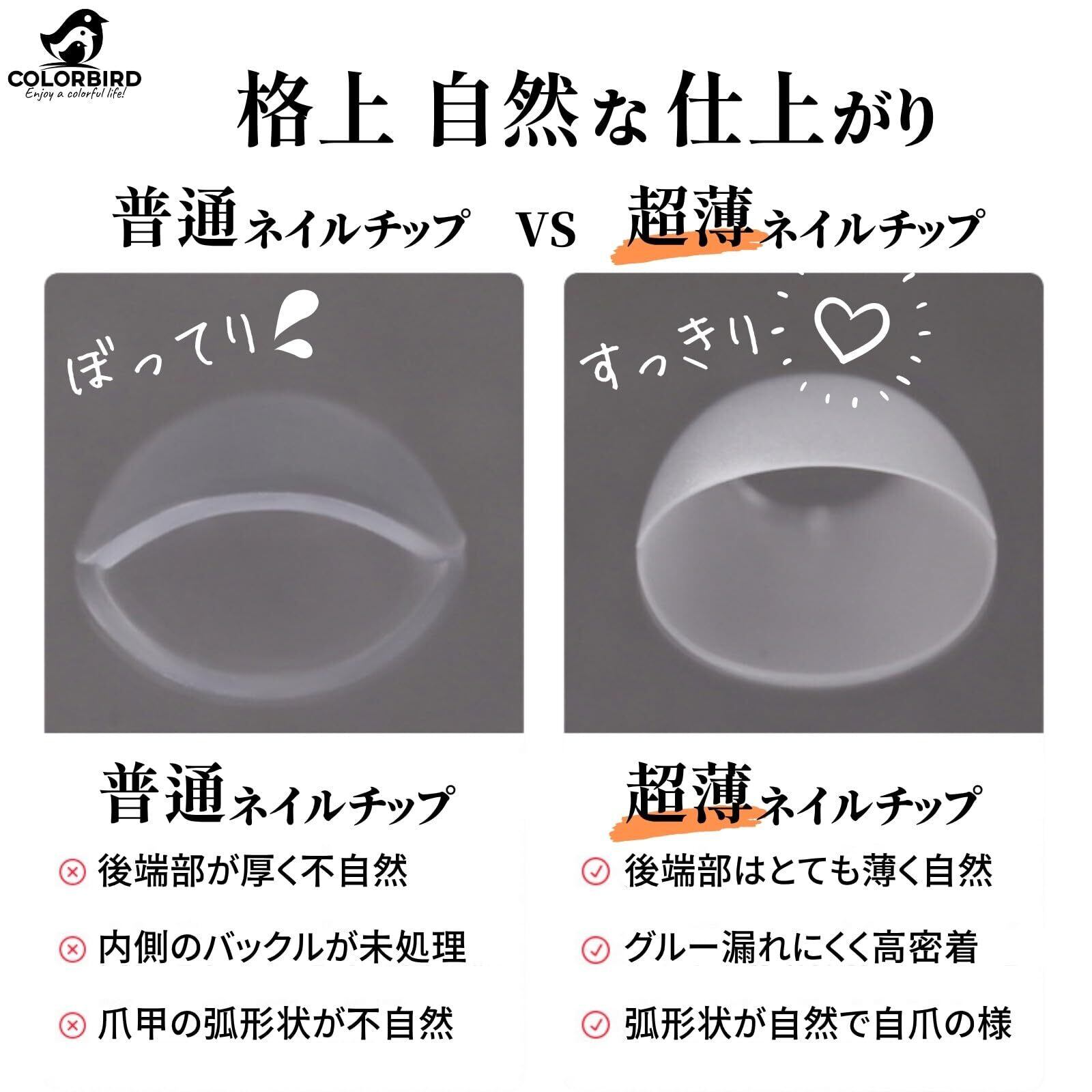 COLORBIRD ネイルチップ 超薄 ロング クリア サンディング 自然なフィット感 つけ爪 (オーバルL, 240pcs)