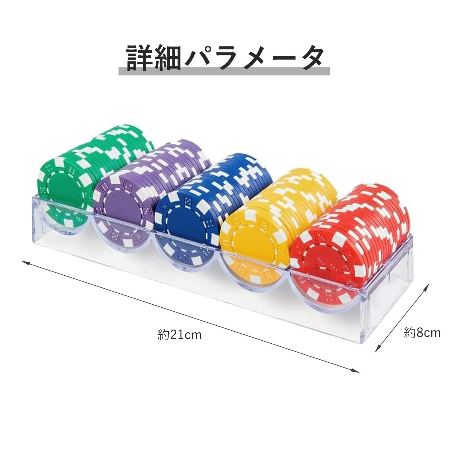 【特徴】チップ収納ボックスは100枚まで収納可能で、ゲーム中やゲーム後の紛失時に簡単に保管できます。 透明度が高く、軽量で耐久性があり、どんな場所にも適しています。(この製品にはチップが含まれていません!!!!!!!!!!!!)