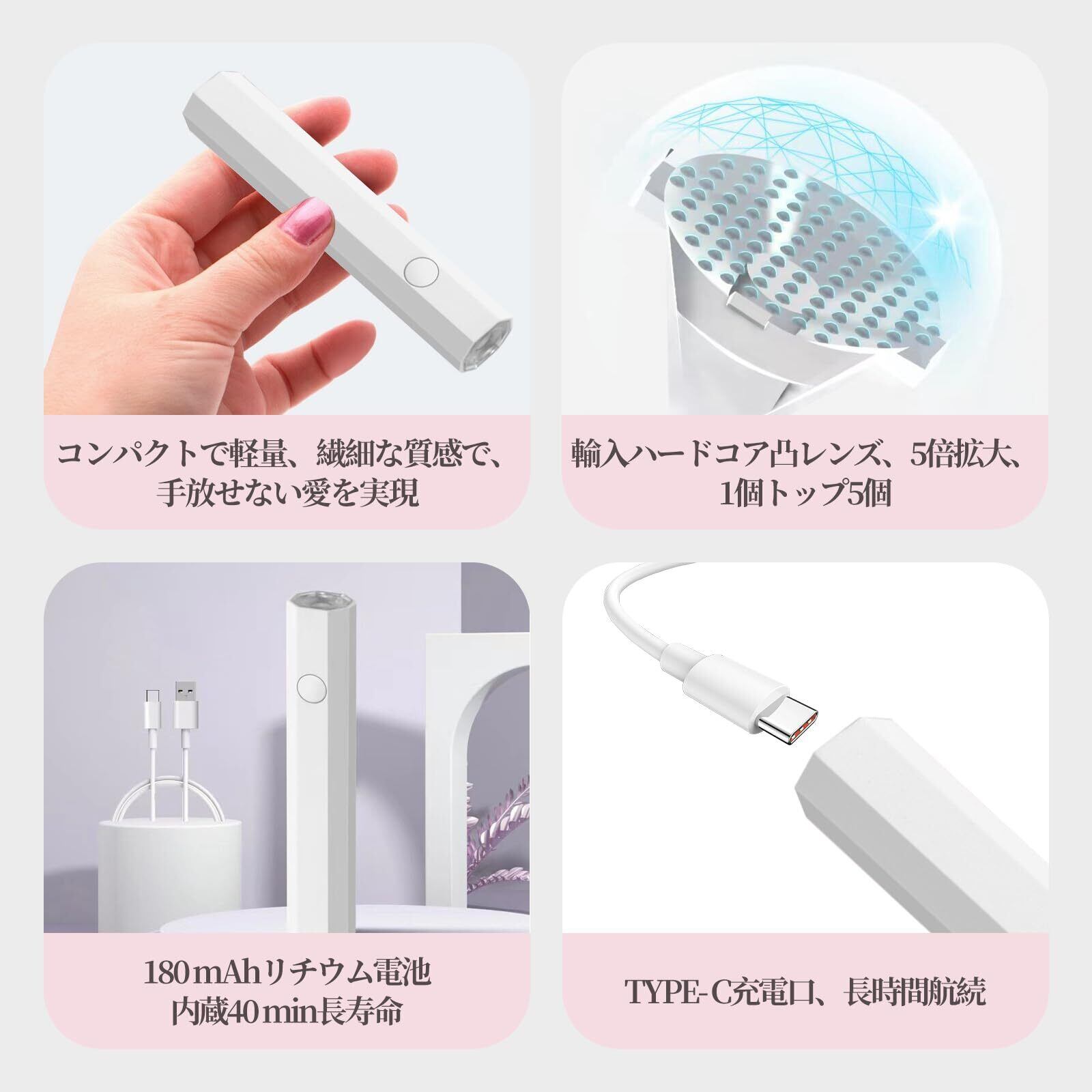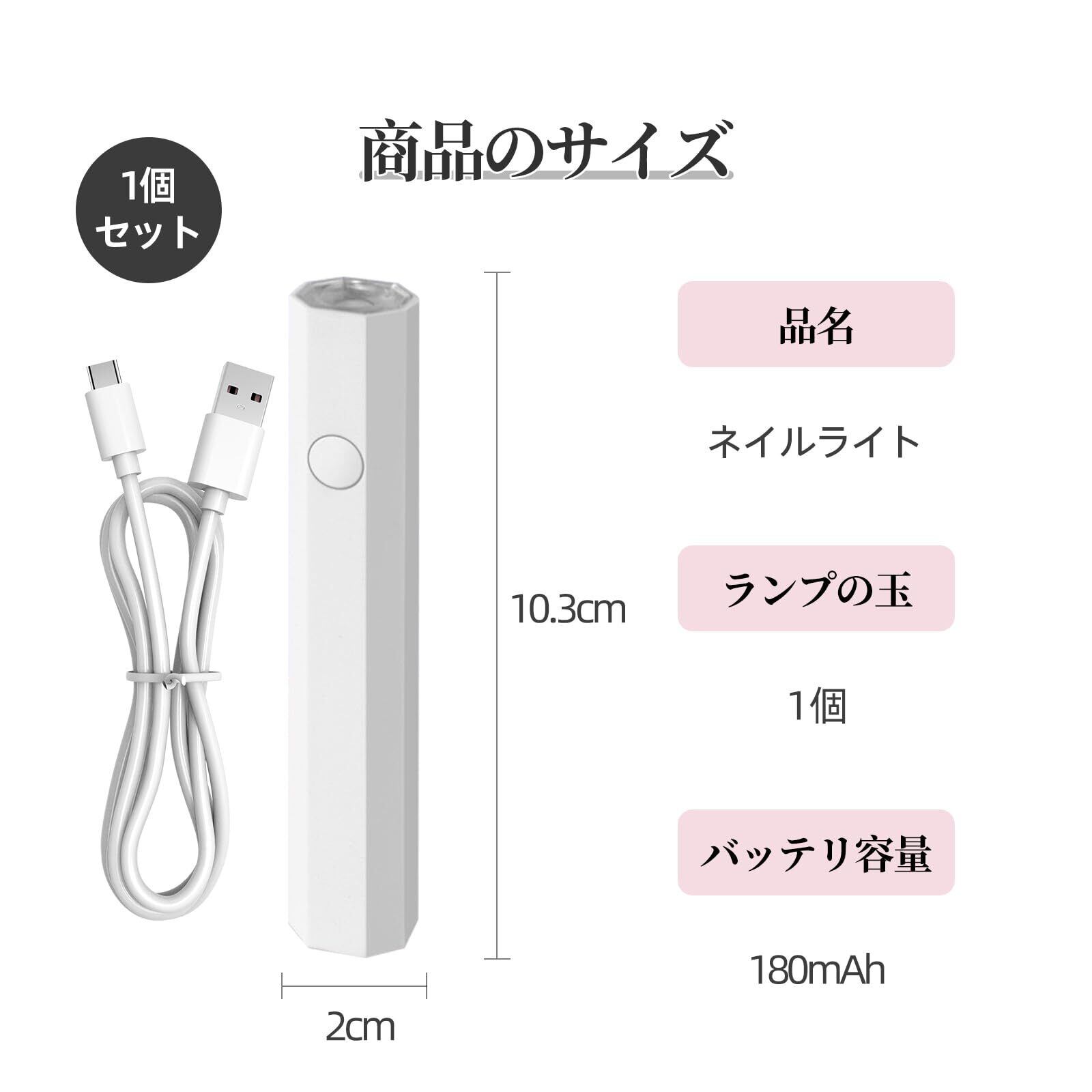 【詳細サーズ】12.5×1.8×1.8 cmのミニマリストデザインで、どこにでも持ち運べ、ビジネス旅行でも旅行でも、リュックサックに無理なく簡単に入れて、いつでもどこでもネイルアートの旅を楽しめるミニLEDネイルランプです!完全な充電後、最大40分間継続的な作業をサポートし、バッテリー寿命が強いです。