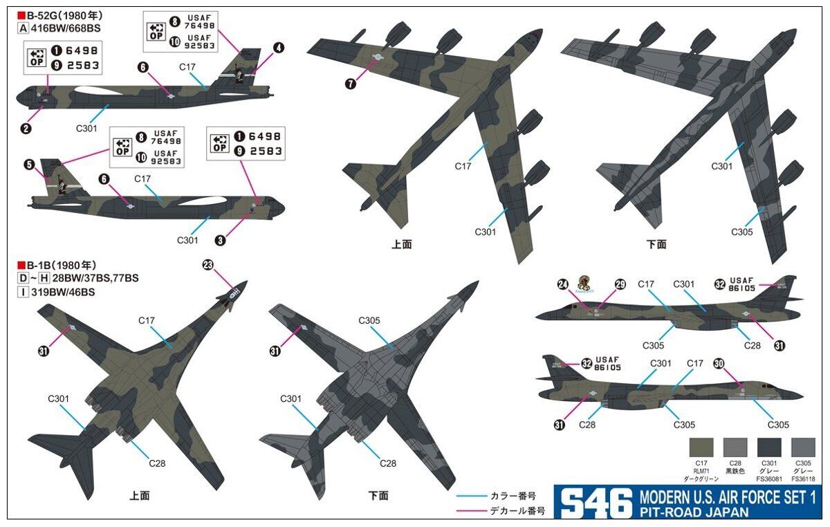 アメリカ空軍戦略航空軍団の中核を担ってきたB-52と、可変翼超音速戦略爆撃機B-1Bの新旧爆撃機セットです。