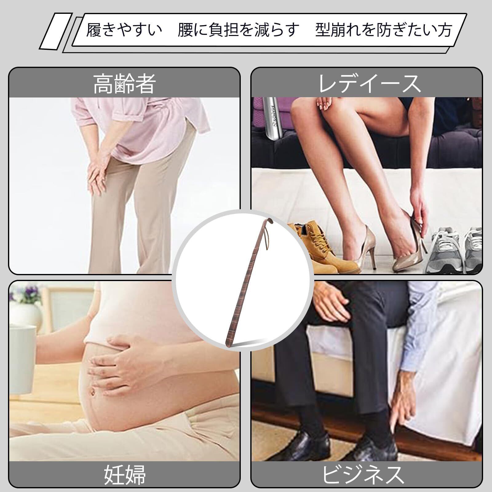 【適切の長さ握りやすい】靴べら ロング-だれでも使いやすい: 緩やかにカーブした長い靴べらのハンドルはクラシックな外観で、快適な感触で握りやすく、扱いやすいです。丈夫で非常に頑丈なストラップで靴ベラを簡単に掛けることができます。靴べら ロング:53㎝。重さ:約166g。
