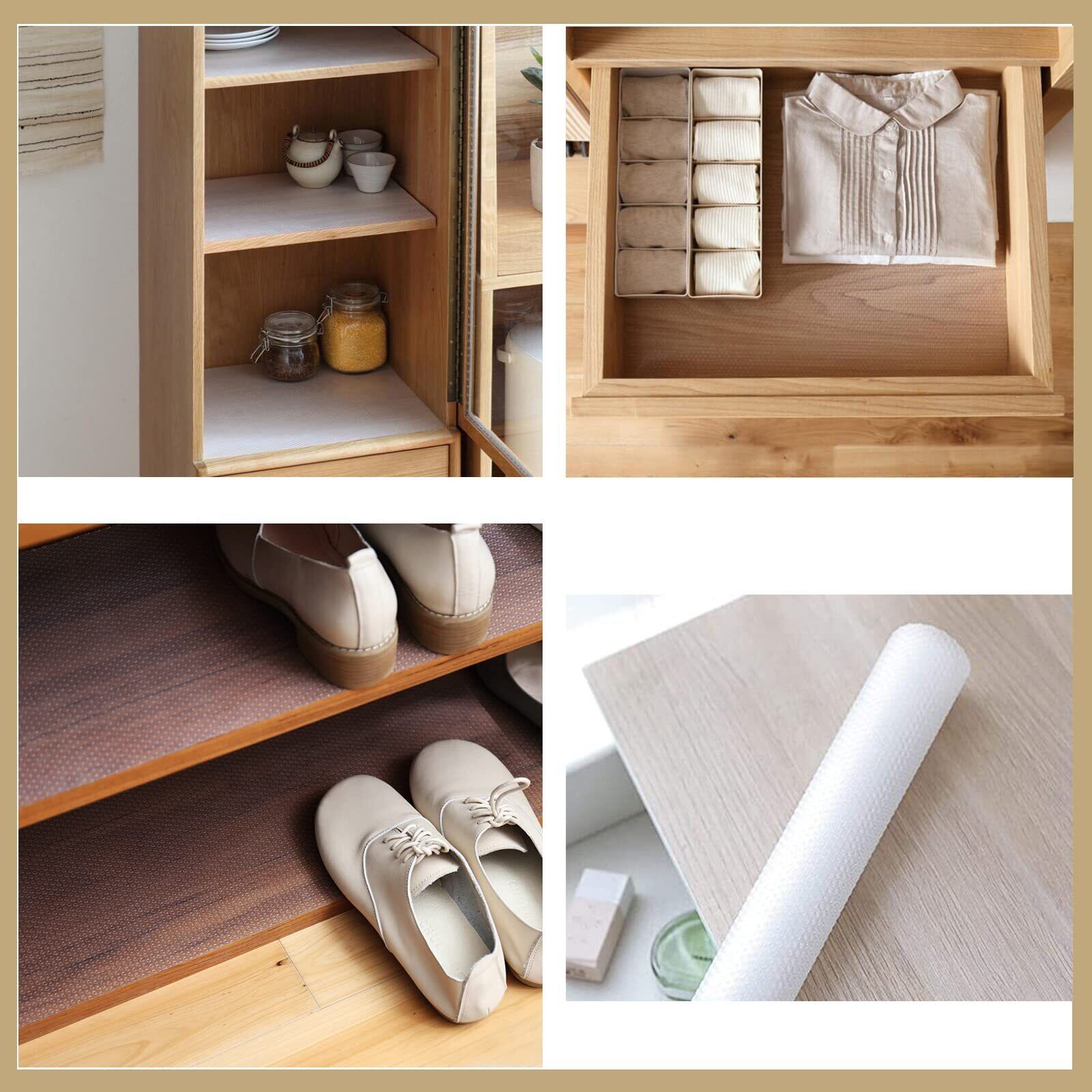 「とても便利な保護シート」食器棚シートは、キッチン周りの引き出し、流し台下の収納、冷蔵庫、食器棚そして本棚や靴箱、ペット用品の収納箱の内部の汚れを防止する下敷きマットシートです。