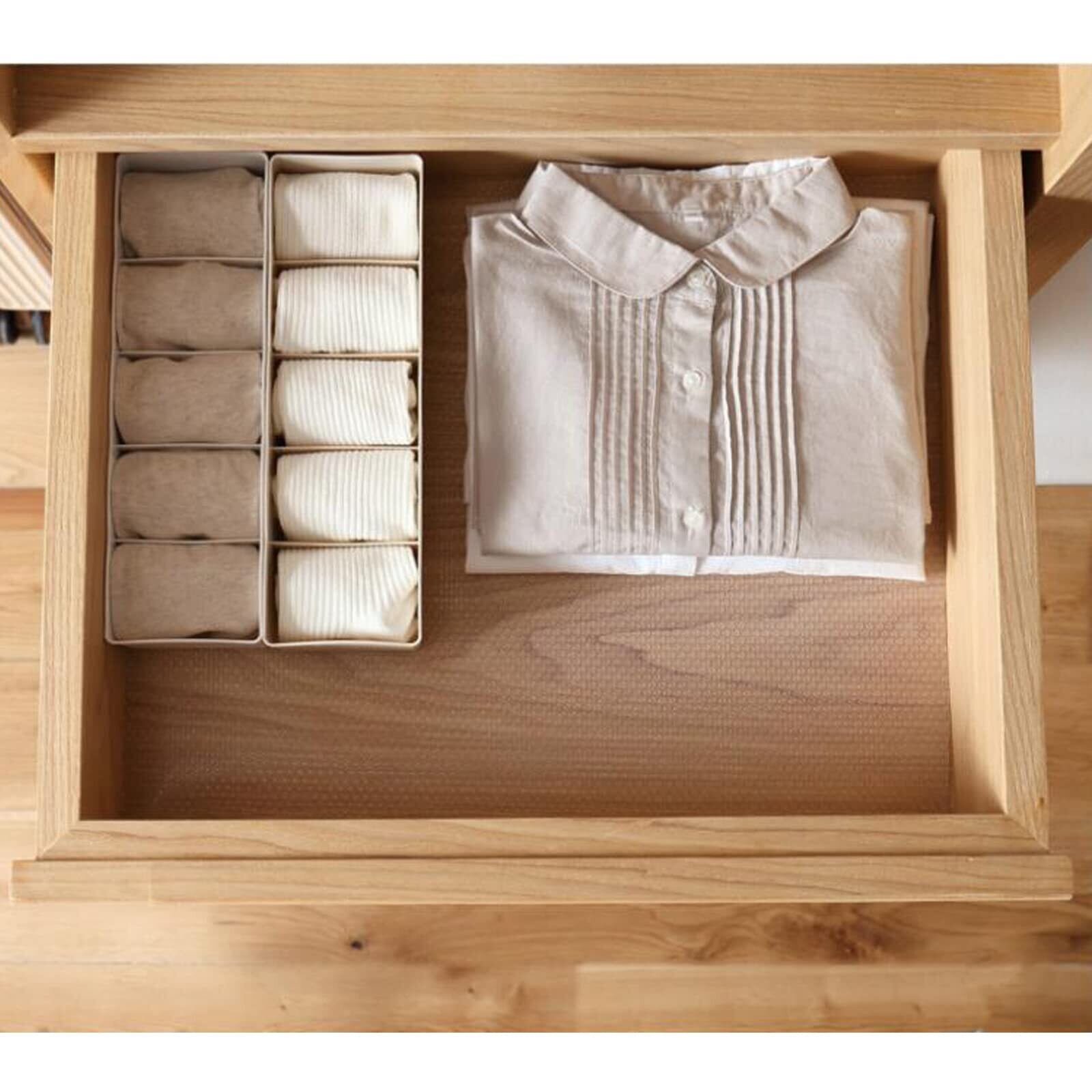クッション性があるので、棚を傷つけず、傷もつきません、下からの湿気や汚れの侵入を防ぎます。