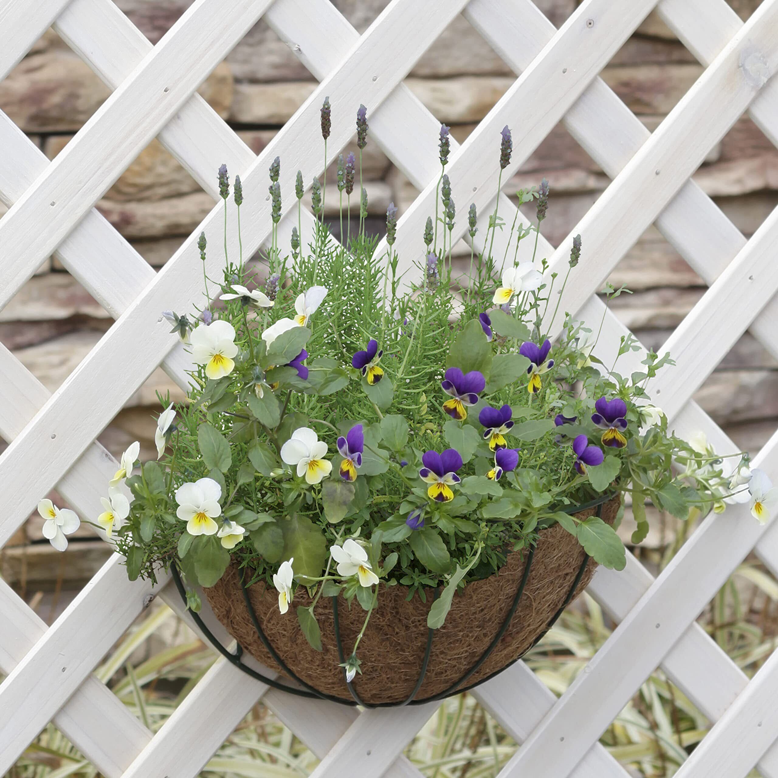 壁掛けタイプのハンギングバスケット。ラティスなどに掛けて、植物を立体的に飾れるアイテムです。壁やフェンスに掛けて飾るとおしゃれな空間を演出できます。