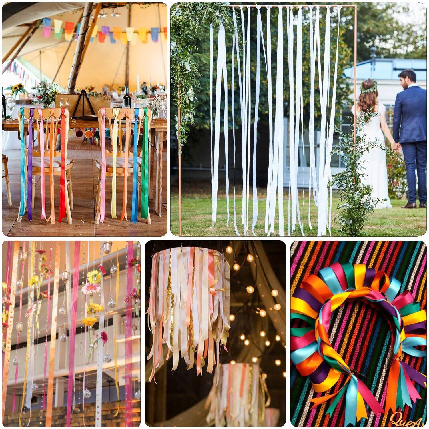 ギフトラッピングのアクセサリー - マルチカラーのサテンリボンは、誕生日プレゼント、結婚祝い、記念日プレゼント、ホリデーギフト、招待状、手工芸品など、あらゆるギフトボックスの包装に最適です。また、イースター、ハロウィン、クリスマス、誕生日パーティー、感謝祭パーティー、結婚式パーティー、家族の集まり、お祝い、展示会などのあらゆる行事の装飾にも適しており、ユニークな色のタッチを追加します。