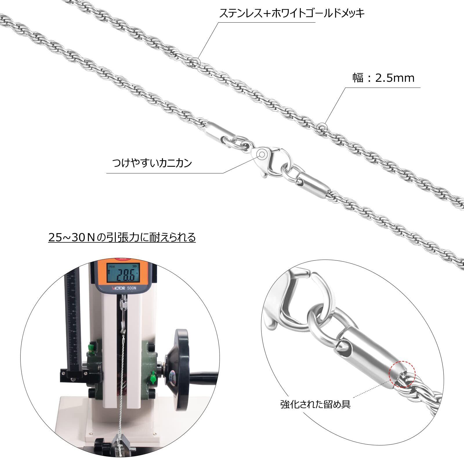 【より丈夫で長持ち】チェーンの接合部には、着脱が楽なカニカンを使用しています。通常の引き輪よりつけやすいし、簡単に外れないです。良質なメッキを施したのでサビによる変色や黒ずみを防いで常に美しさを保ちます。