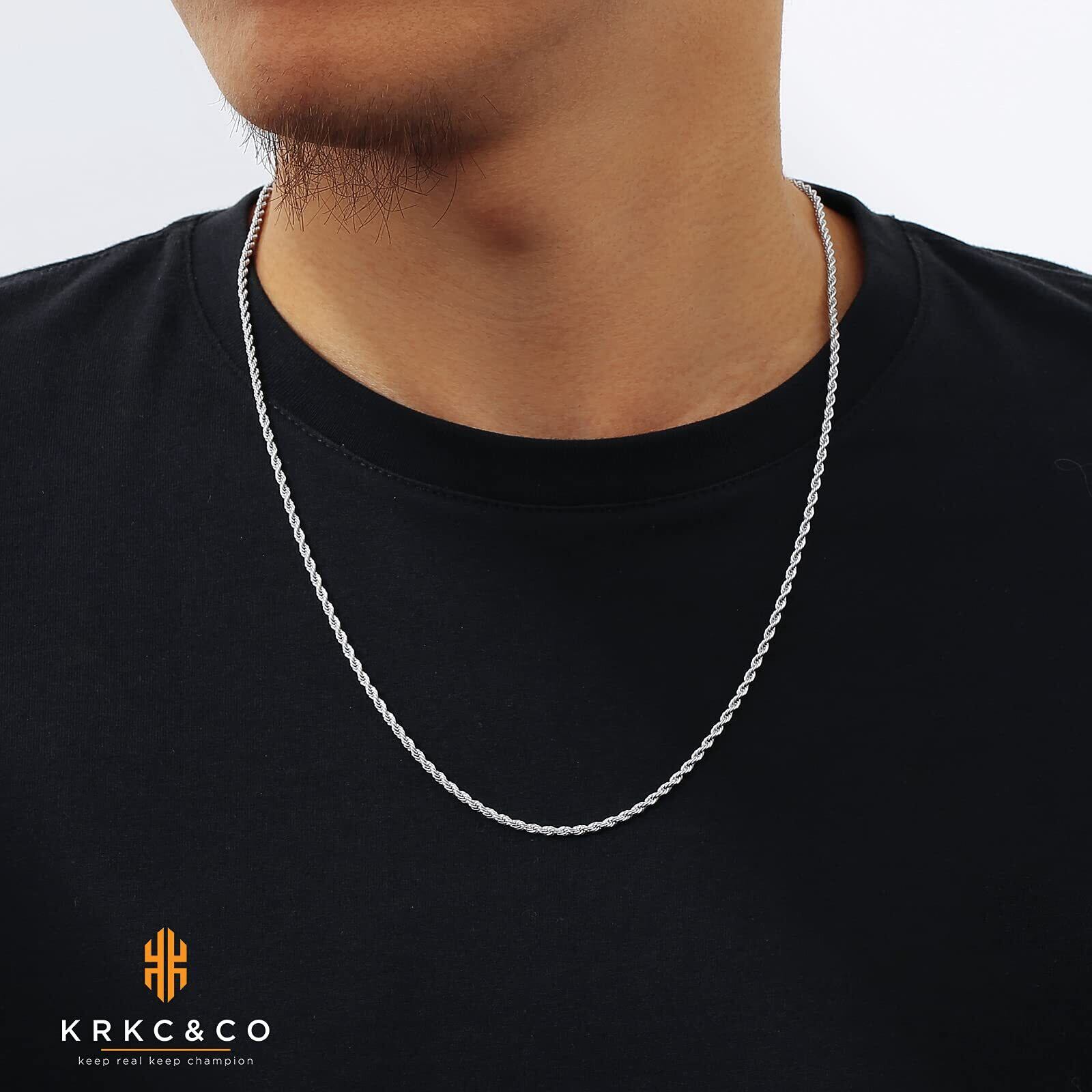 KRKC&CO フレンチロープチェーン こむぎチェーン 幅2/2.5/4/6mm メンズ チェーンネックレス ステンレス 金メッキ ネックレスチェーンのみ ハワイアンジュエリー シンプル 男女兼用 アクセサリー