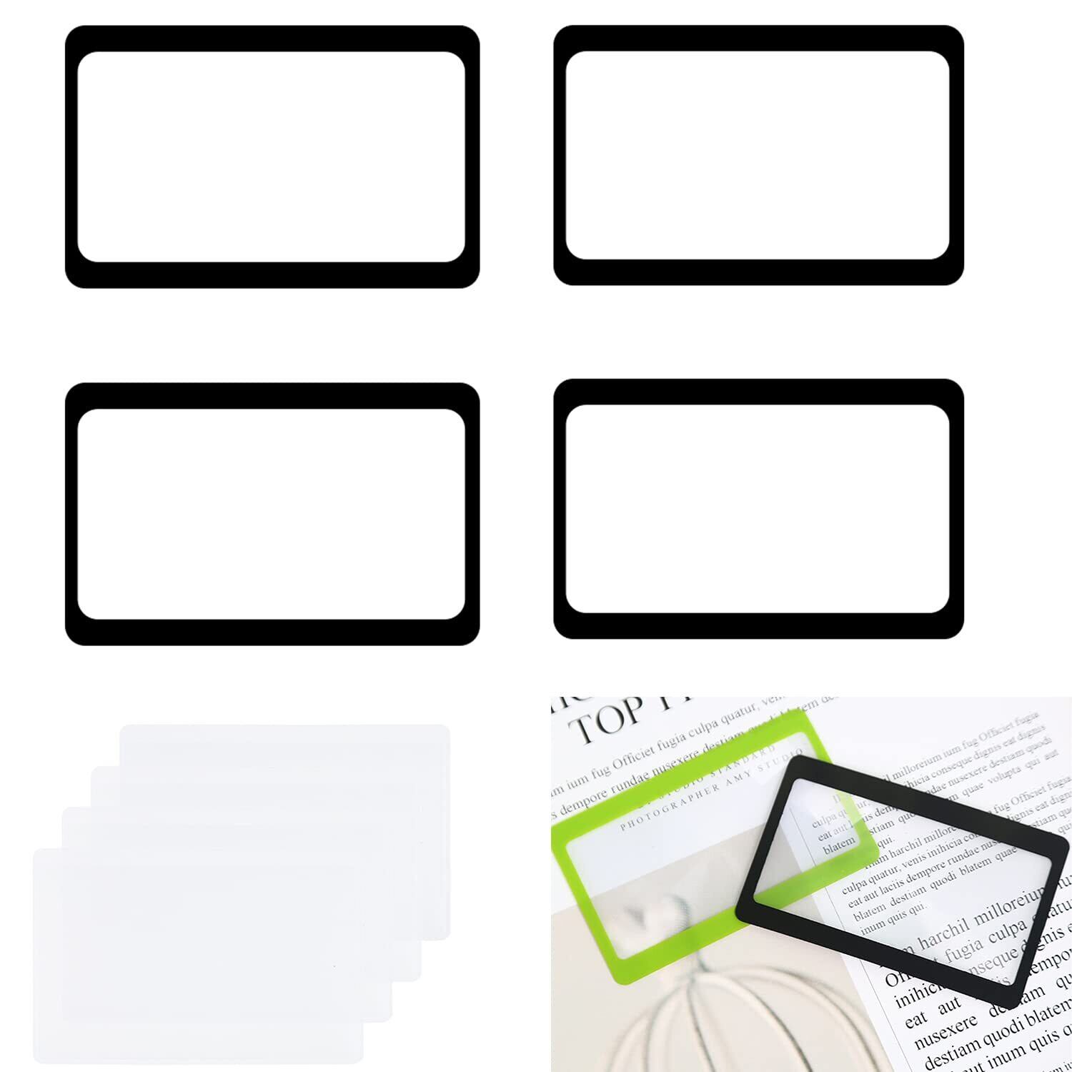 YOVOY 4枚 カード拡大鏡 ページ拡大シート 3倍拡大 虫眼鏡 カードルーペ 超薄型 ページ拡大レンズ 見やすい 軽い 読書ルーペ (8.5×5.5 cm)