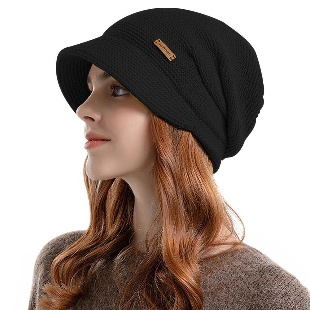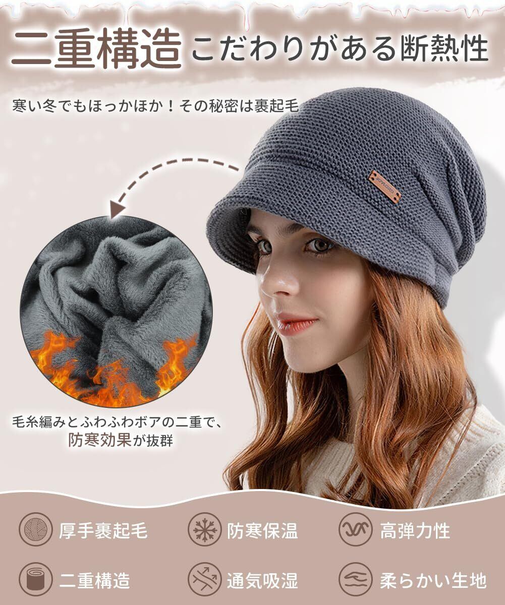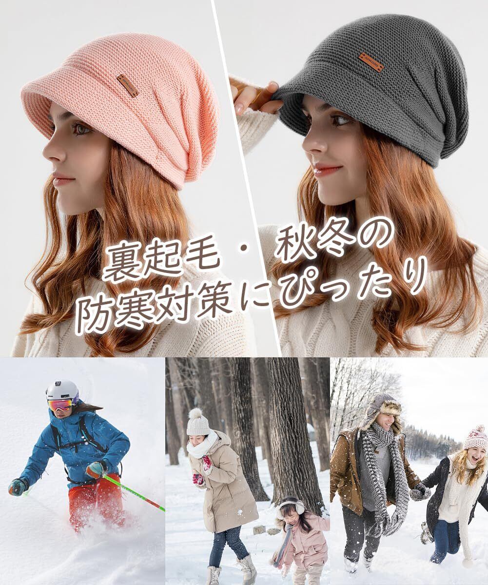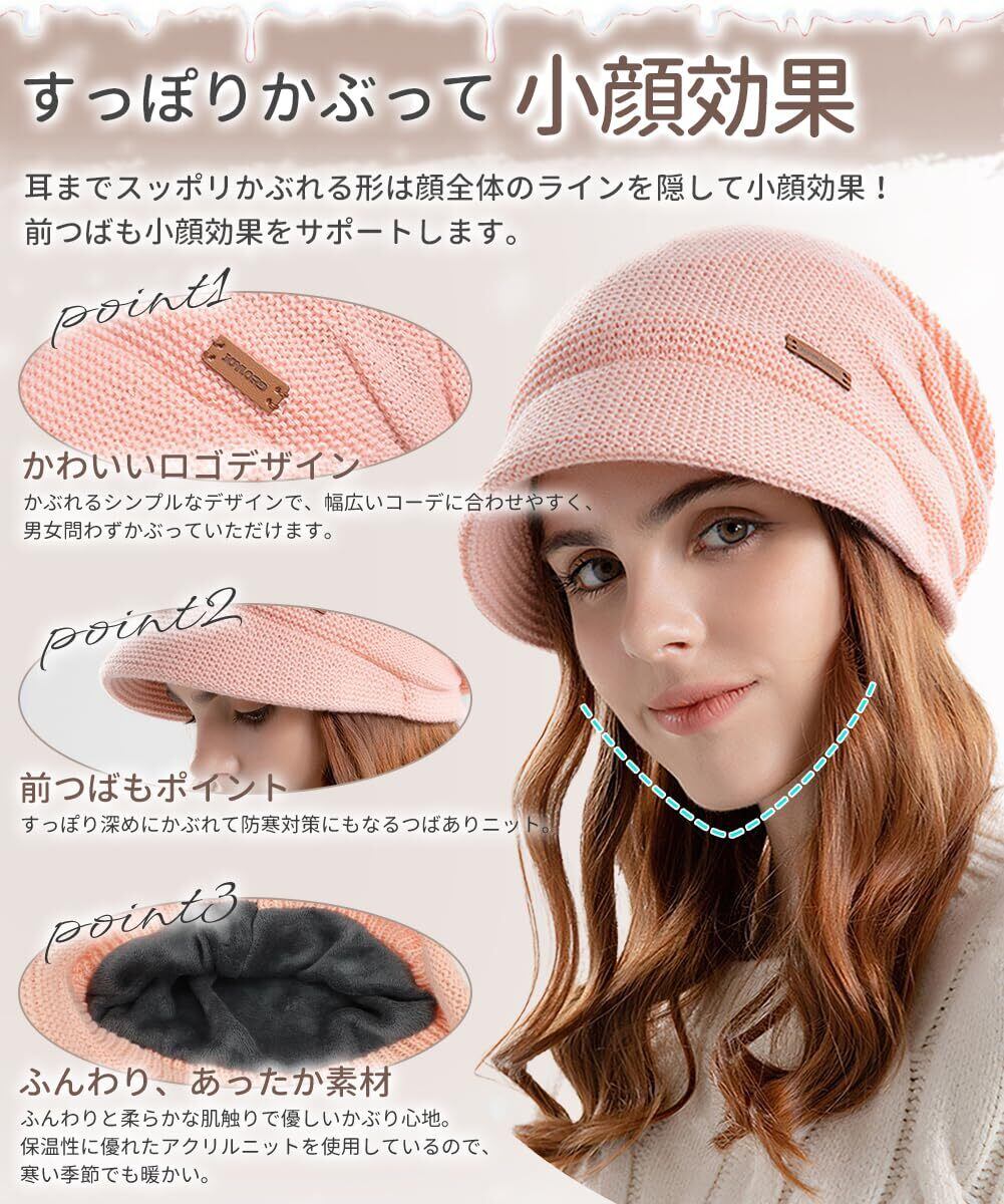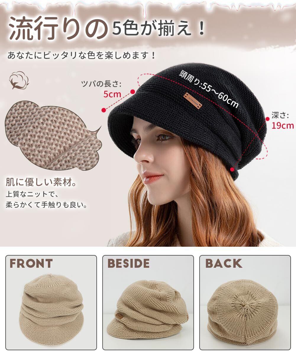 [SIVAN] ニット帽 レディース 秋冬 【定番なつば付きニット帽・裏起毛二重保温・肌に優しい】 防寒防風 保温 柔らかい 締め付け感ゼロ 小顔効果 通気 ふんわり 帽子 ニット帽子 ニットキャップ ケア帽子 無地