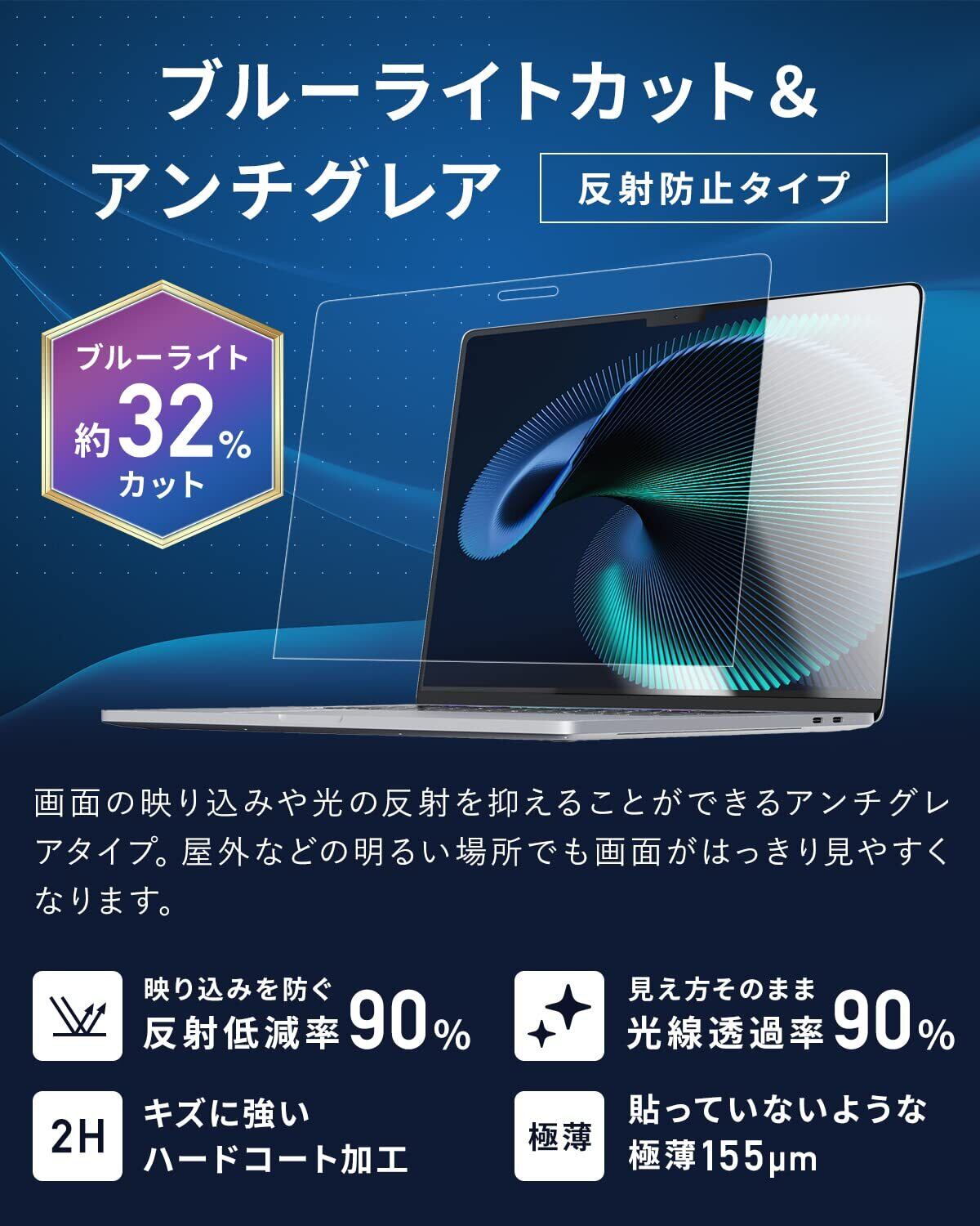日本製 保護フィルム ブルーライトカット アンチグレア 反射防止タイプ:反射低減率90% 光線透過率91%【対応機種】MacBook Air 15.3インチ (A3114 A2941:2025年 2024年 2023年モデル)