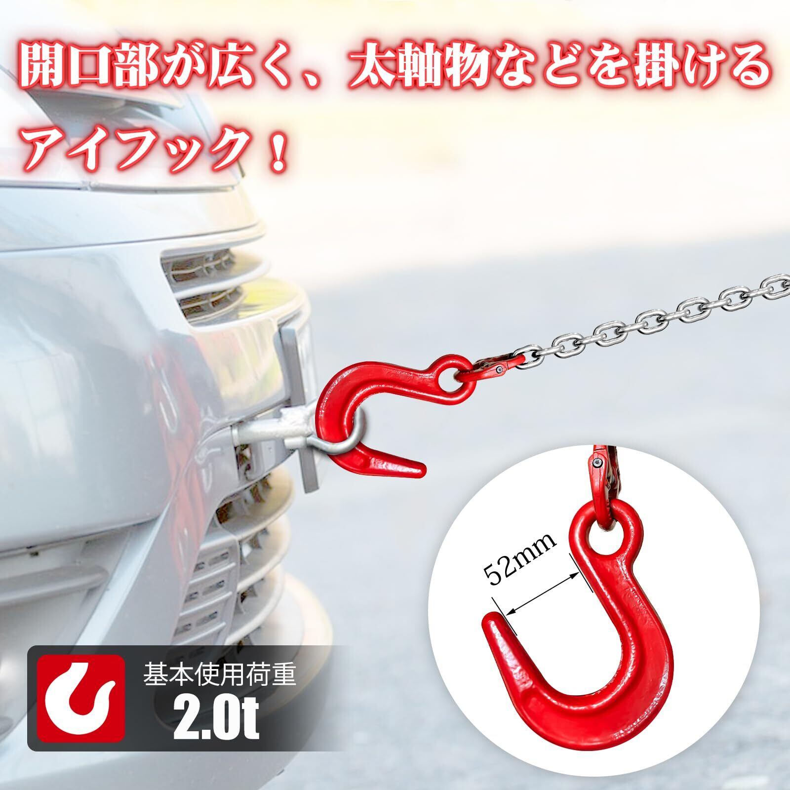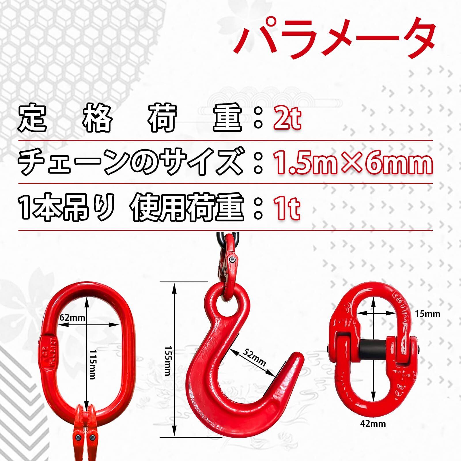 【サイズ】定格荷重:2t チェーンの長さ: 1.5m チェーンの直径:6mm フック使用荷重:2ton