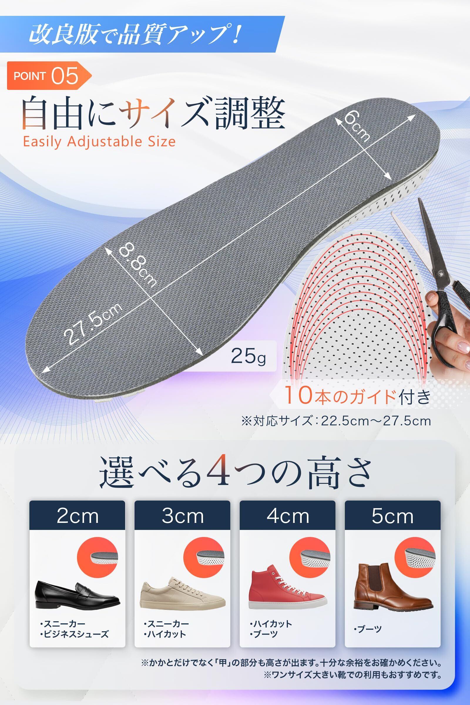 【医師監修改良】シークレットインソール 4種 (2cm~5cm) 身長アップ 低反発 中敷き Helcynas (4cm×2組)