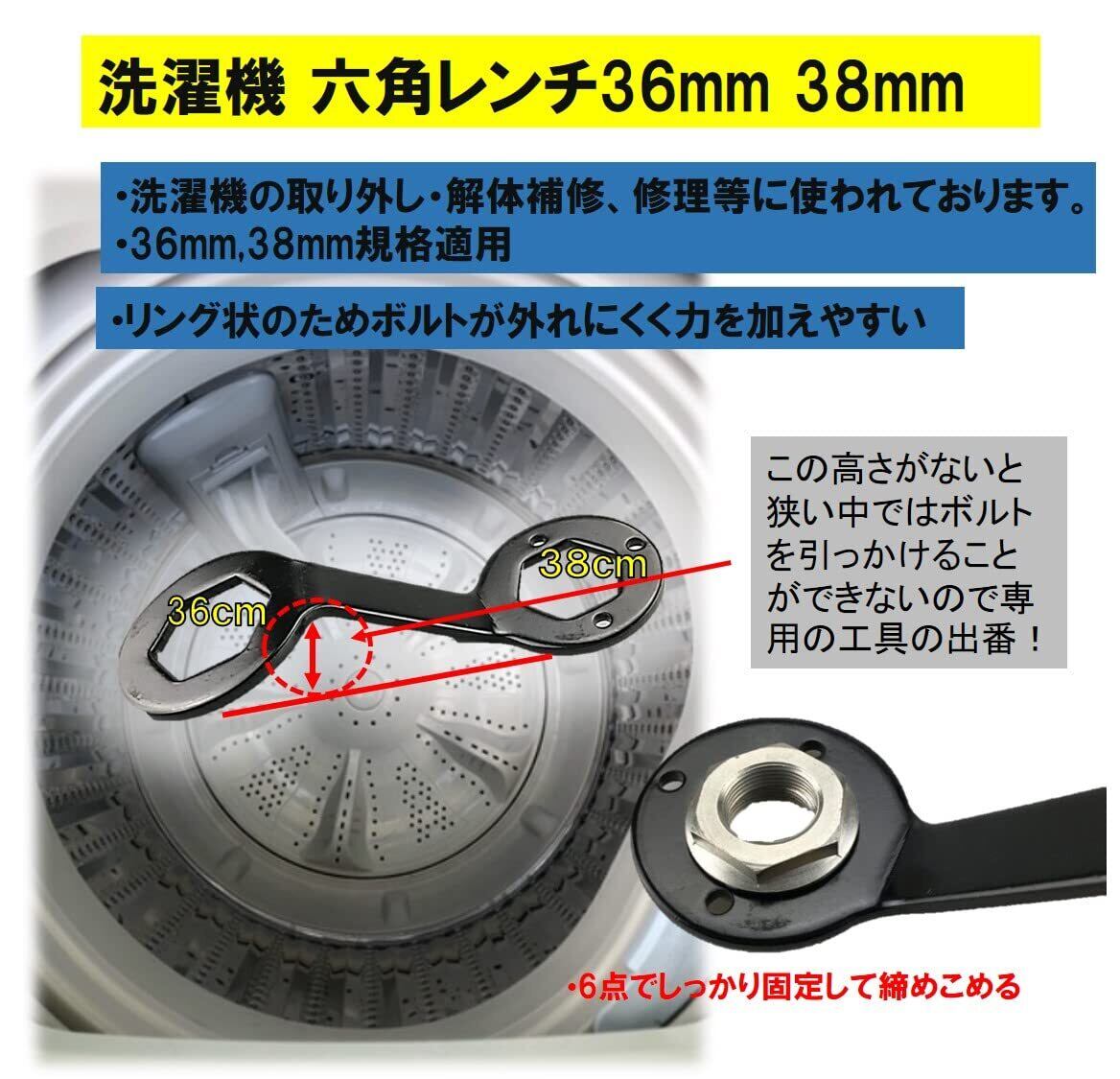 洗濯機 専用 六角レンチ 分解 解体 修理 掃除 工具 38mm 36mm 販売! レンチ スパナ メガネレンチ 六角スパナ 洗濯槽 としてお使いください!