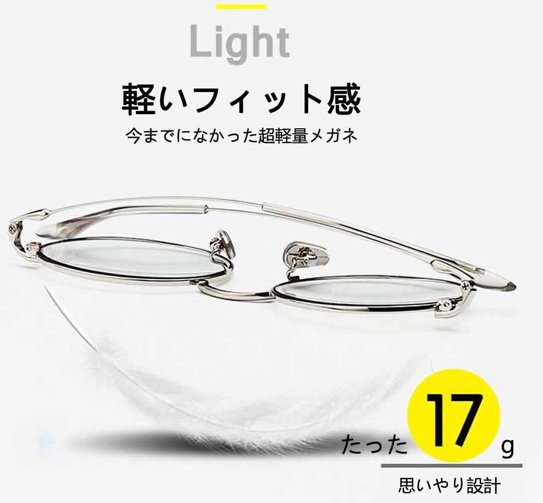 【pcメガネ 超軽量】わずかな17gで【レンズ含め】メガネをかけているのを忘れるほどのフィット感!長時間の着用でも耳やこめかみが痛くなりにくいタイプ.ブルーライトをカットする同時に高い光透過率を確保し、長い時間携帯またはpcを使う人が欠かせないアイテム.