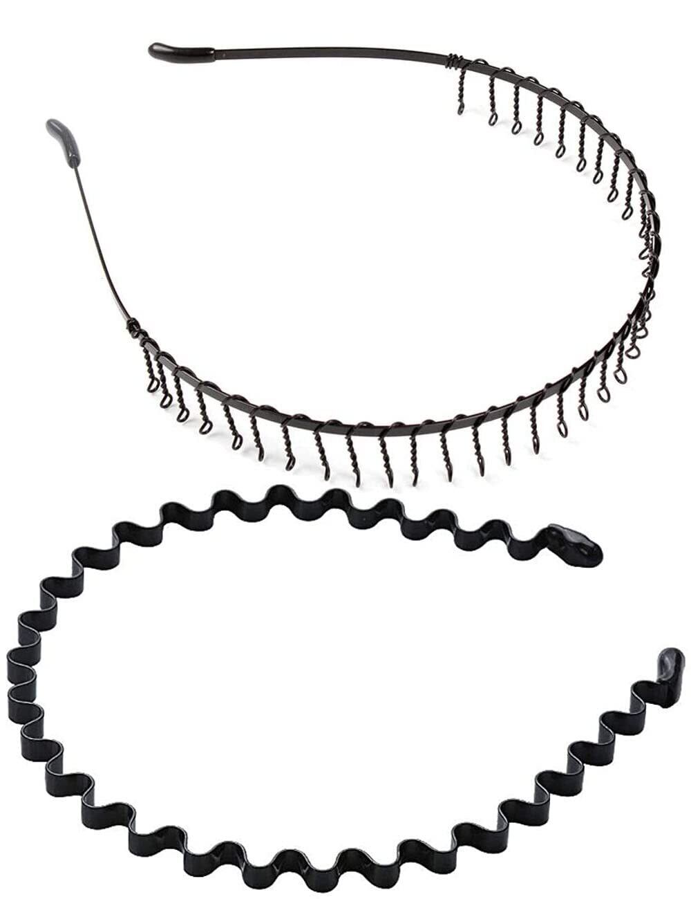 shefun メンズ カチューシャ スプリング ヘアバンド 鉄 波型 くし付き 滑り止め 痛くない 黒 シンプル 前髪 髪飾り 2本セット JP159