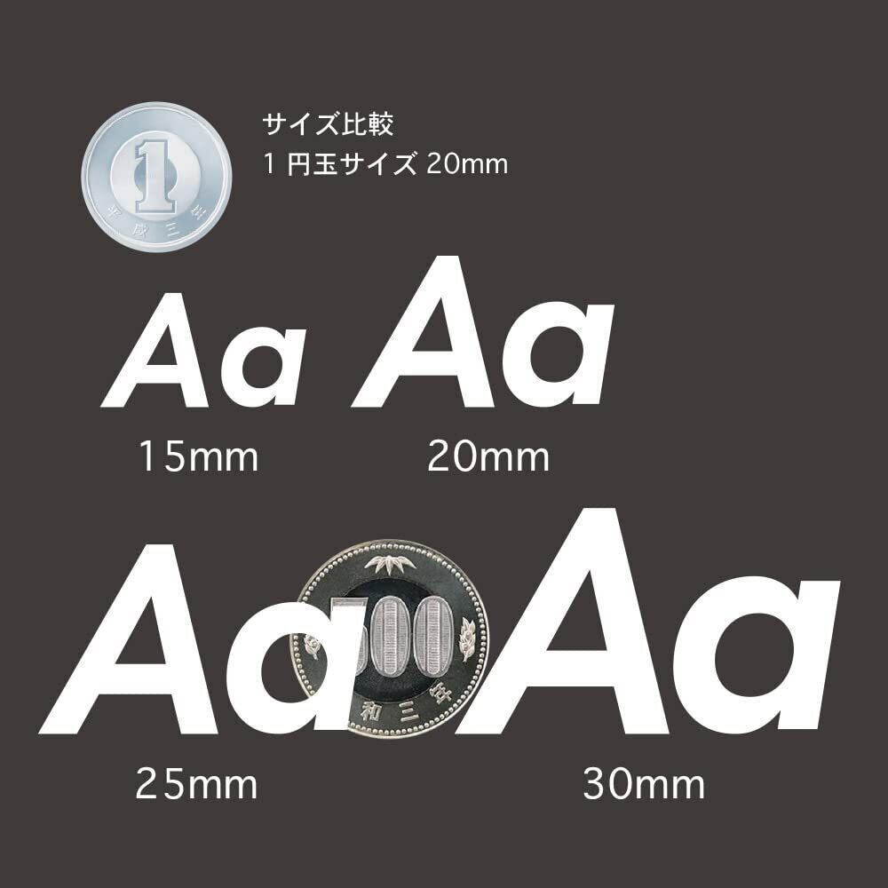 サイズが豊富。アルファベットの防水カッティングシール。アルファベットに切り抜かれているので並べて貼るだけで簡単にオリジナルステッカーに。防水なので、ポストやドアや 自転車などに名前を書いたり、スーツケースや持ち物のデコレーションや お店のディスプレイにも。アイデア次第でいろいろ使えます。※デカールではありません。素材は厚みのあるシールです。サイズを確認の上お買い求めください <内容>英語 10mm 15mm 20mm (同じものが2枚入り) 25mm 30mm (各1枚 計2枚入り) ※数字 10mm 15mm 20mm 25mm 30mm (同じものが2枚入り)