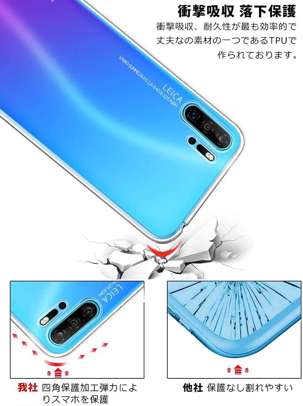 Huawei P30 Pro ケース クリア HW-02L 耐衝撃 透明 薄型 カバー 軽量 超スリム TPU ソフトケース 落下防止 全面保護 P30Pro 対応