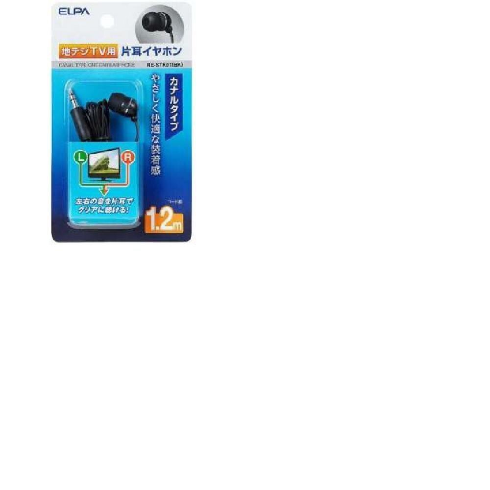 エルパ (ELPA) 地デジ用 イヤホン 1.2m (病院用/片耳) クリアな音質/片耳イヤホン LR同時/ブラック/RE-STK01(BK)