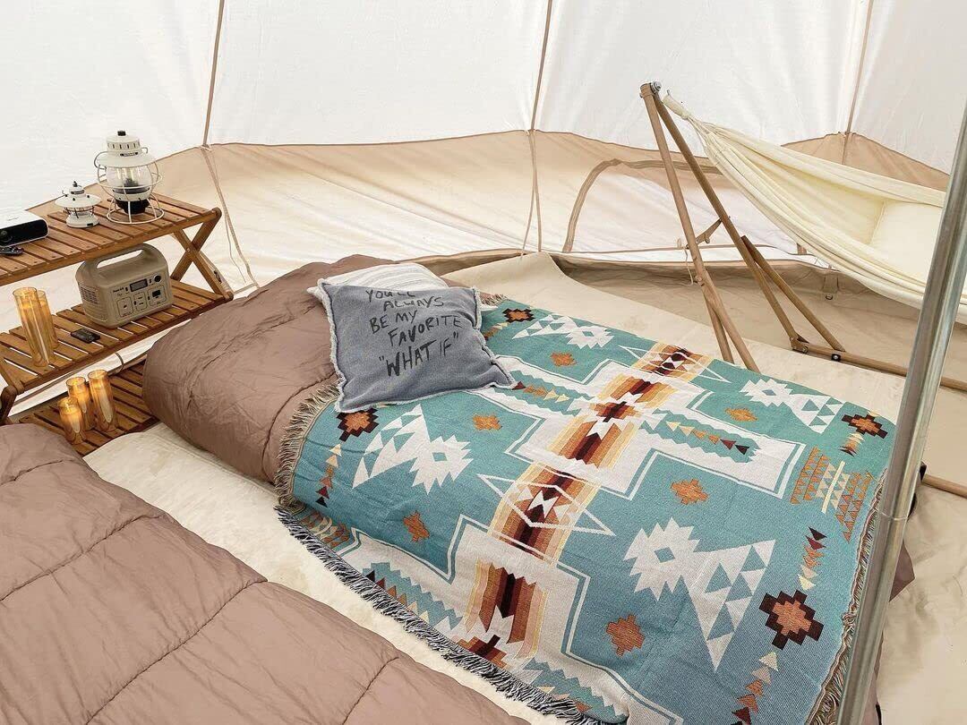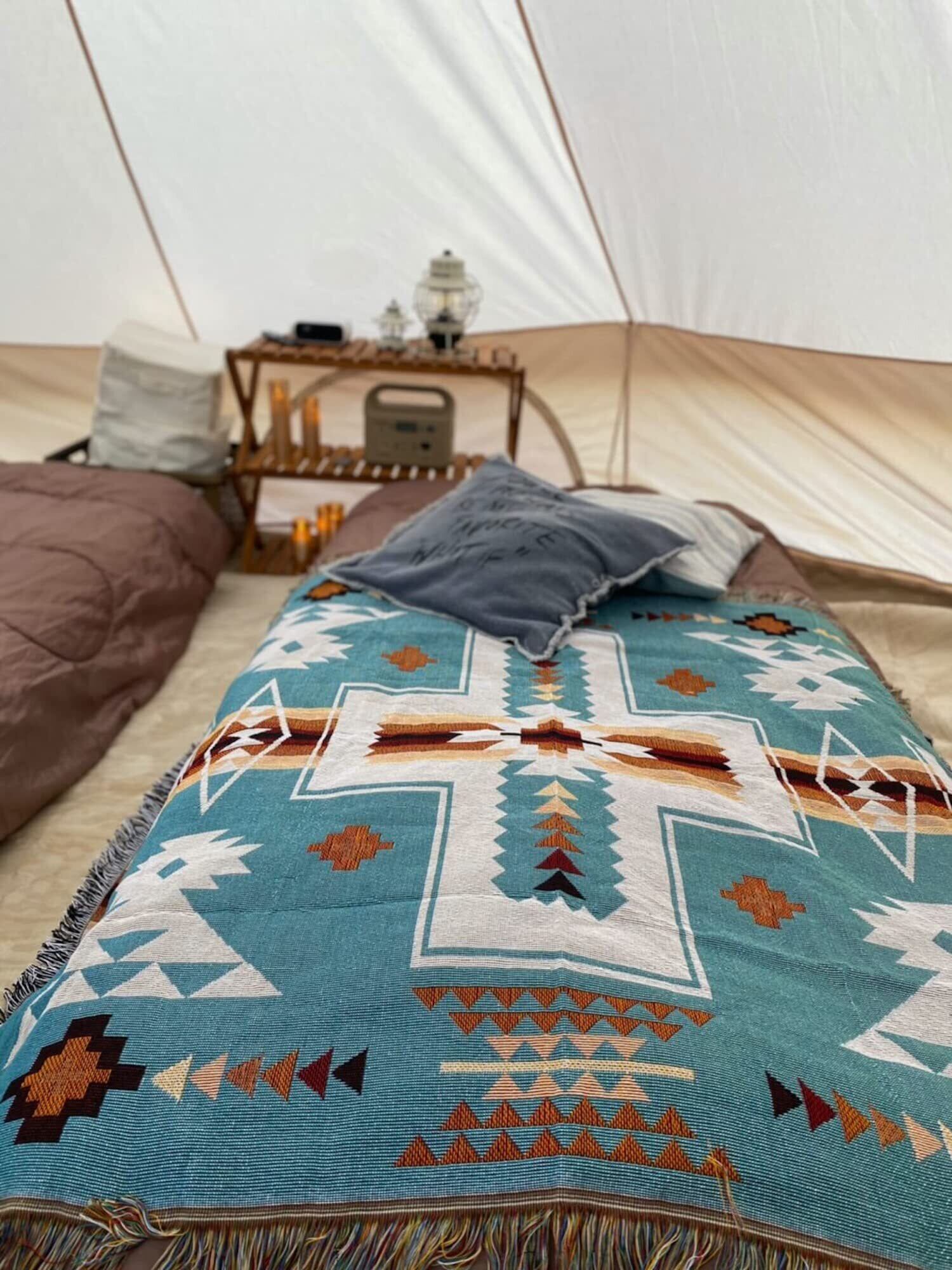 【多機能ブランケット】様々なシーンで活用できます。キャンプだけではなく、お宅やオフィスでブランケット、ひざ掛け、レジャーシートやピクニックマットなどとしては最適です。それに、デスククロスとソファーカバーにも高品な物です。