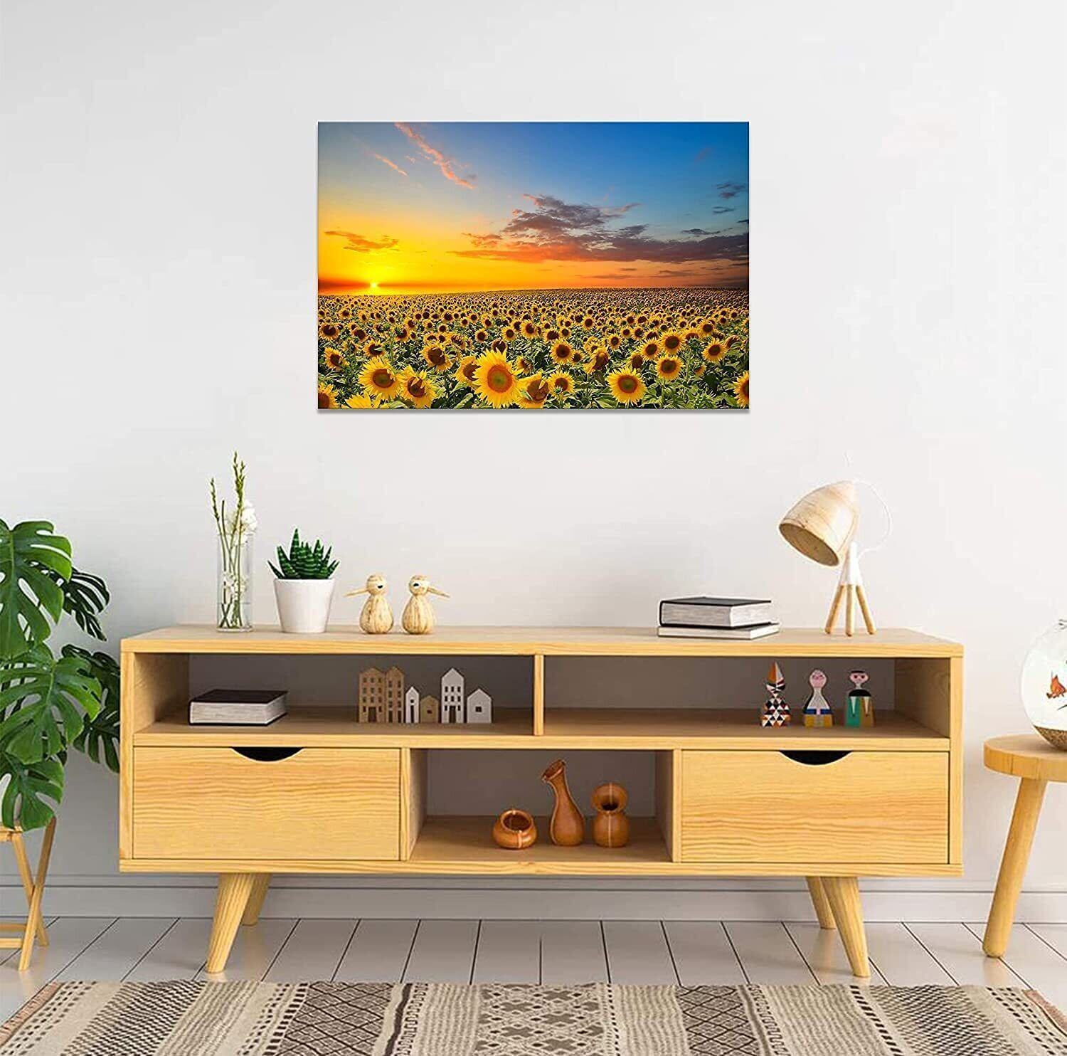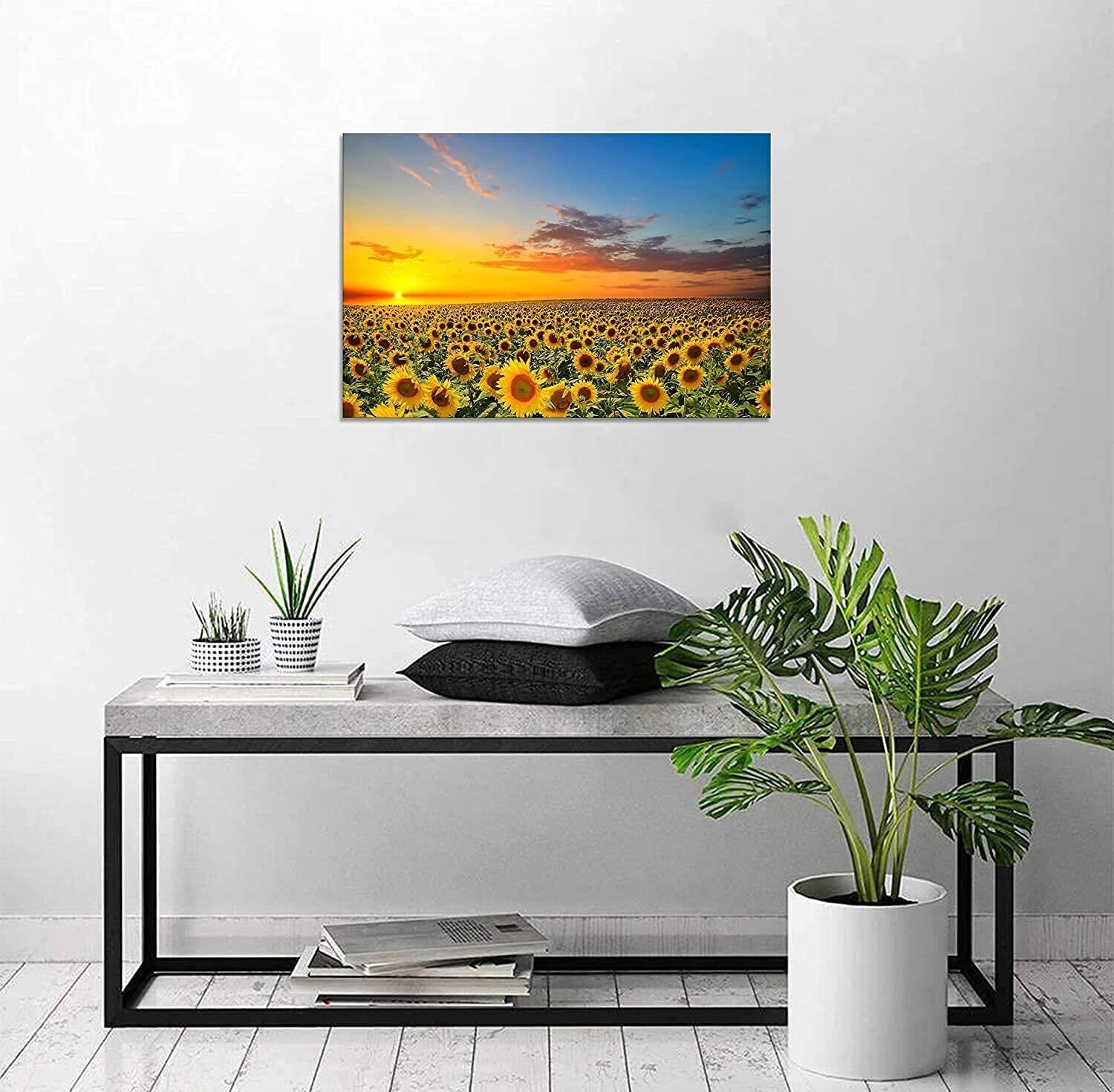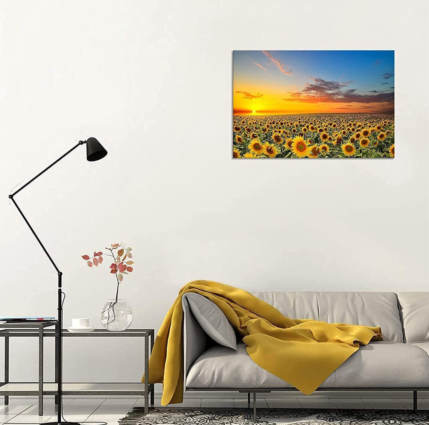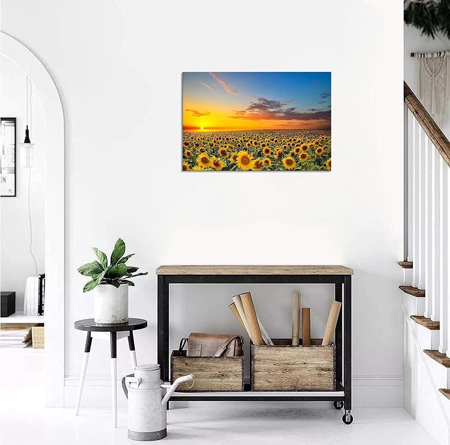 ひまわりの絵 アートパネル 向日葵 黄色い絵 ポスター 風景画 絵画 インテリア 額付き 玄関に飾る絵 木枠付き(30x40cm)