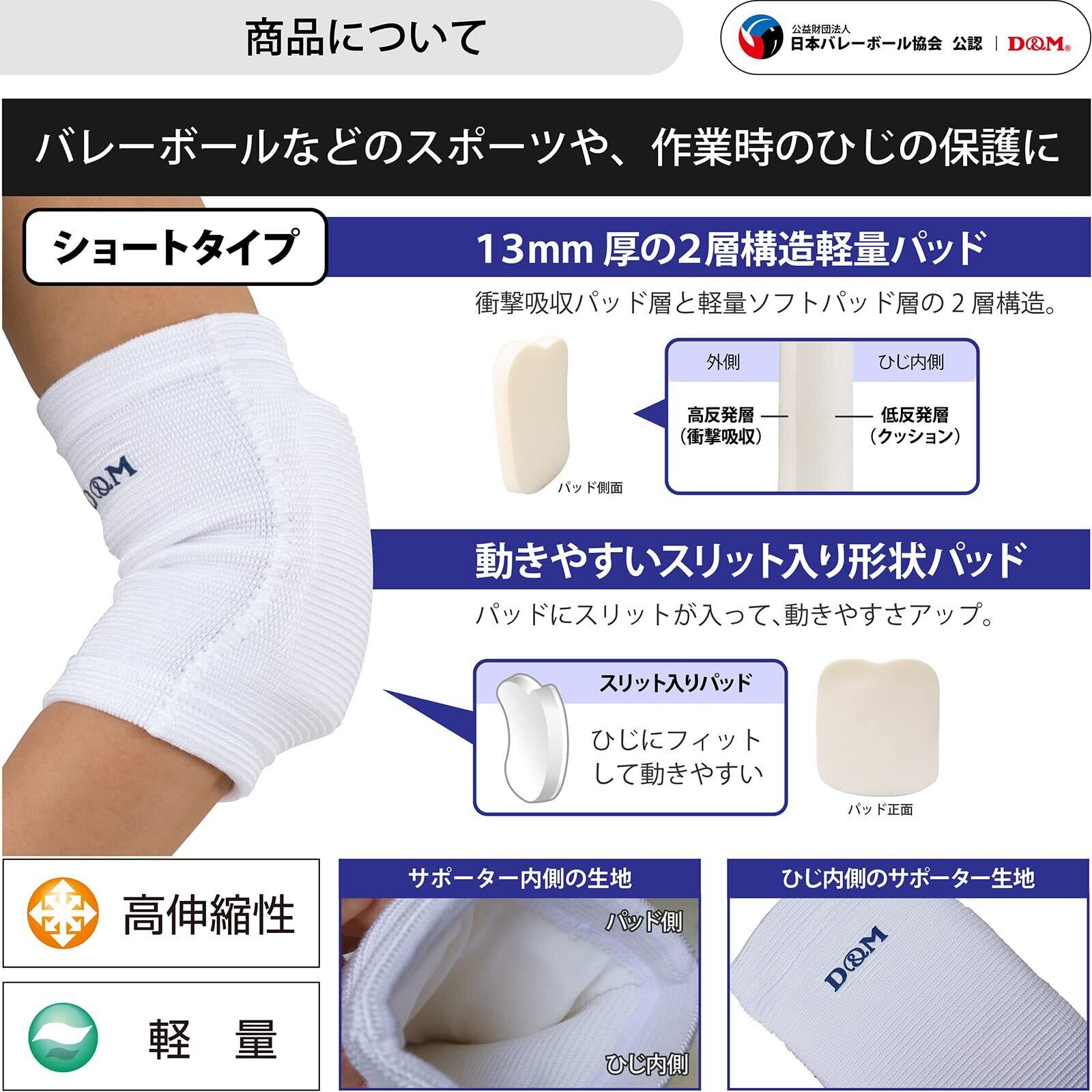 D&M(ディーアンドエム) 肘サポーター バレーボール 肘用 13mm厚 薄型パッド ショートタイプ 日本製 左右兼用 フリーサイズ 1個入 777 固定 エルボーパッド サポート 通気性 柔軟 伸縮 吸汗 速乾 ユニセックス JVA公認 スポーツ