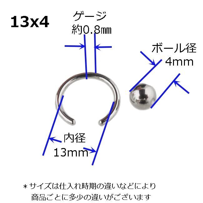 PIAcollection ボディピアス キャプティブビーズリング 20G 0.8mm シルバーカラー ステンレス ボディーピアス ボディピ ピアス 内径 13mm ボール系 4mm 片耳一個売り cbrsv20g13/4