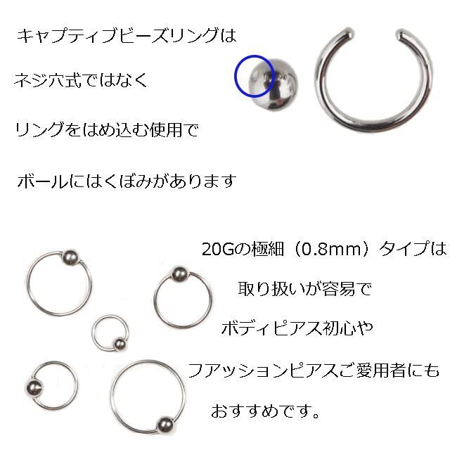 【2022最新】PIAcollection ボディピアス キャプティブビーズリング 20G 0.8mm シルバーカラー ステンレス ボディーピアス ボディピ ピアス 内径 13mm ボール系 4mm 片耳一個売り cbrsv20g13/4 | gsmshop