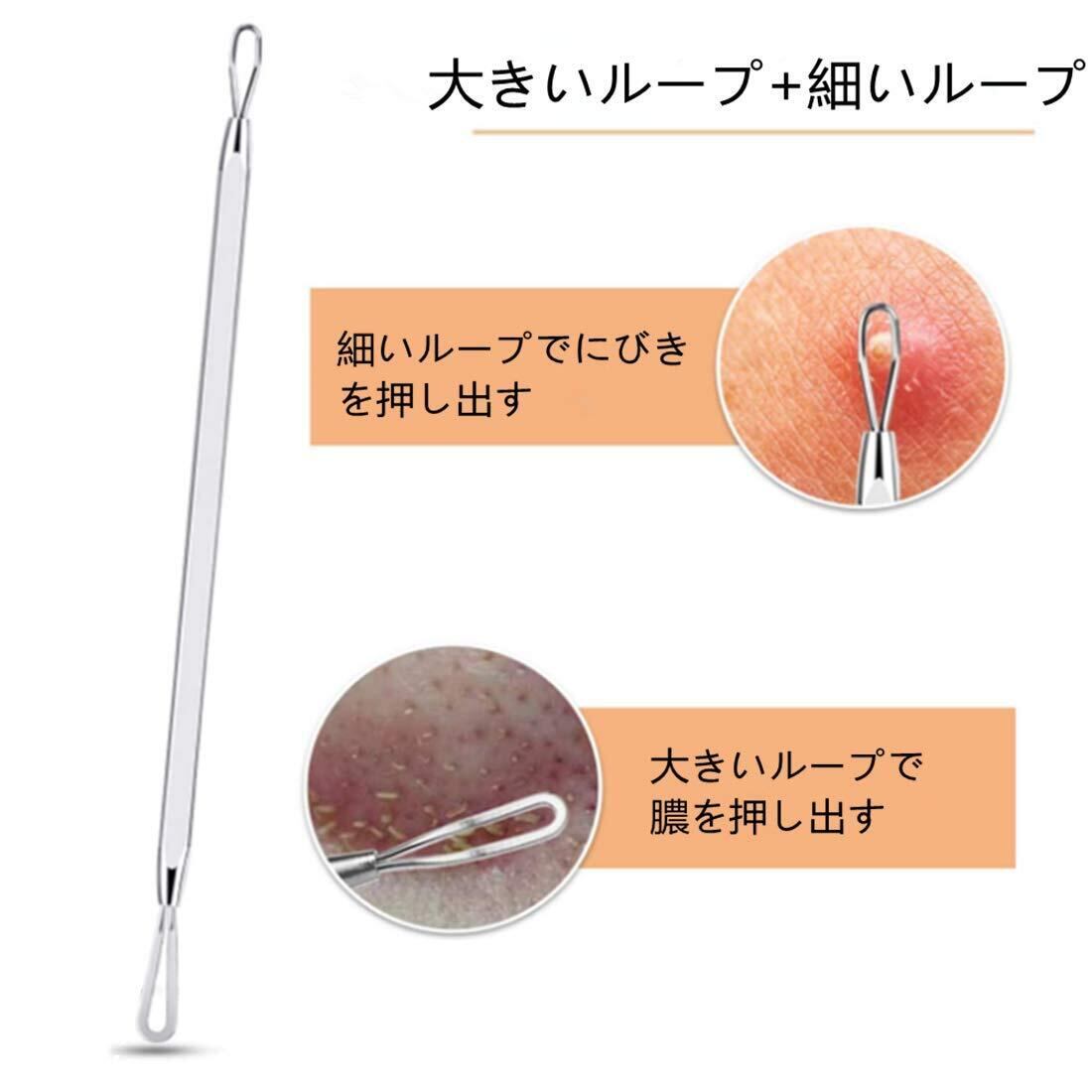 多様な機能: このニキビ取りツールセットは両端ループ、針状の抜きツール+圧出ループ、大きいループ、細いループが含んでいます、3セットです。手軽にスキンセルフケア:顔、鼻周りなどの毛穴の角栓、黒ニキビ、白ニキビ、鼻の黒ずみの除去に最適すっきりスティックです。