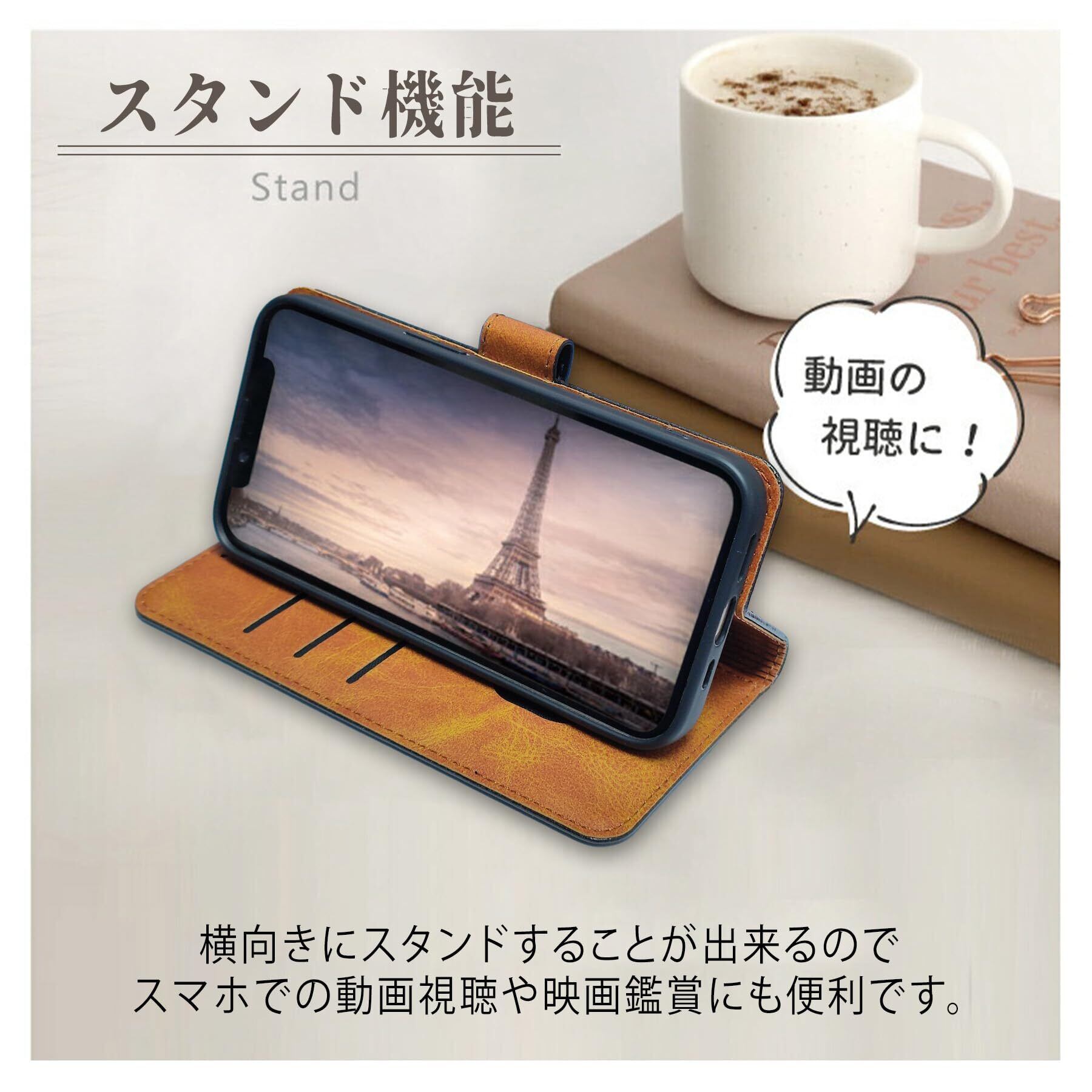 【横置きスタンド機能】スマホケース 14 手帳型 背面カバーが折れ曲がる設計となっているため、スマホスタンドとしてもご利用可能です。動画視聴やテレビ通話でご活用いただけます。