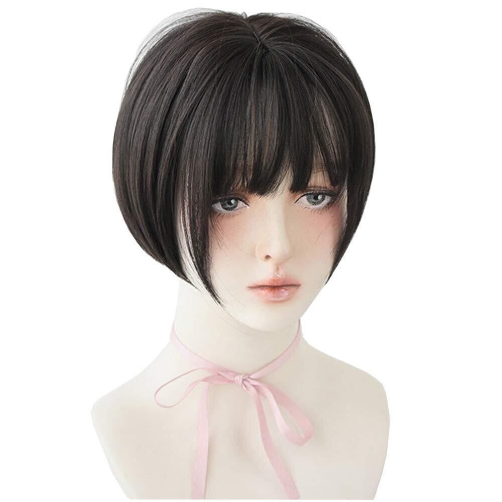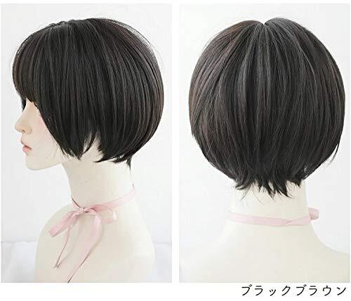 フルウィッグ ショート 前髪 3D グラデーション ヘアアレンジ 襟足 ボリューム カール ストレート つむじ 耐熱 自然 ボリューム 抜け感 (ブラックブラウン)