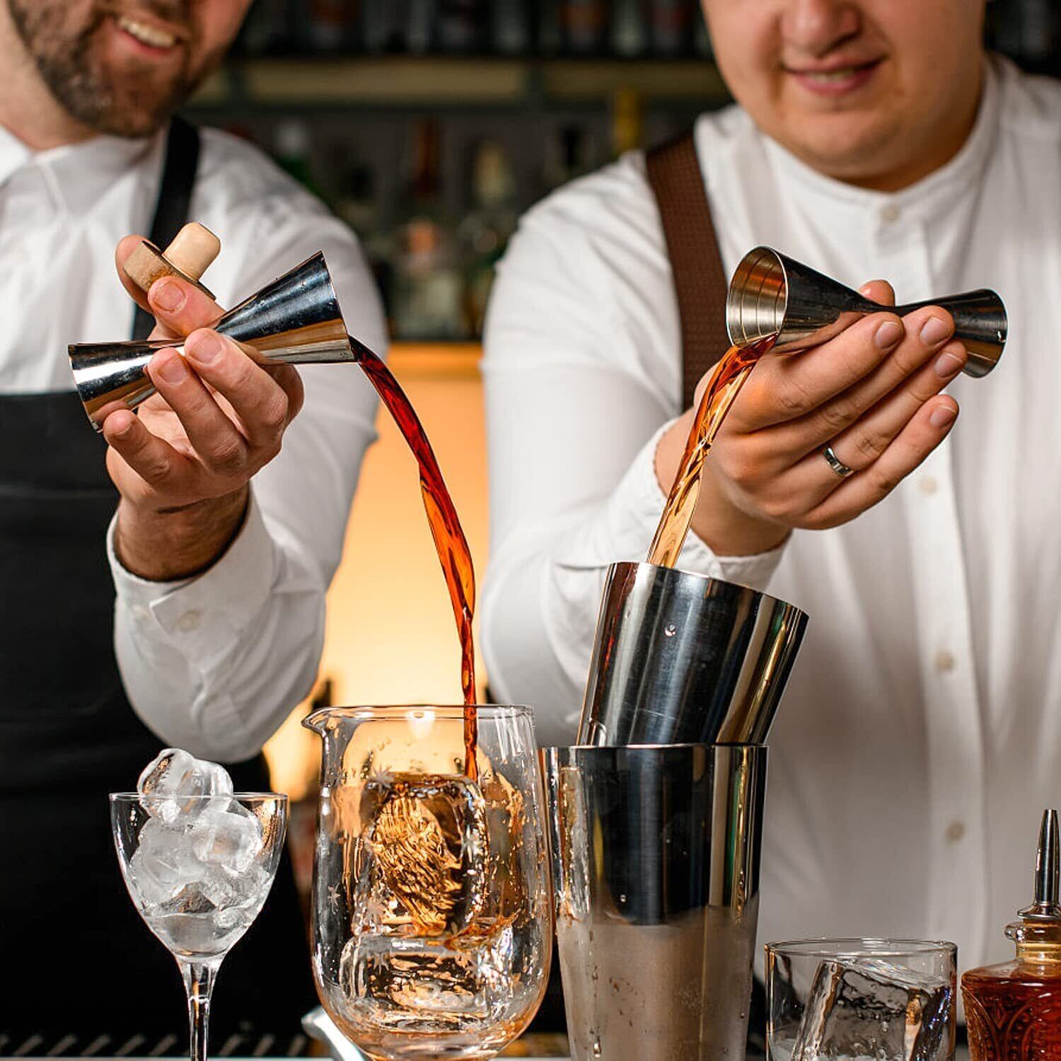 【幅広く使える】:ステンレス製のカクテルメジャーカップは、ホテル、家庭、バー、パーティーなどに最適で、ワイン、ジュース、カクテルなどに適しています。