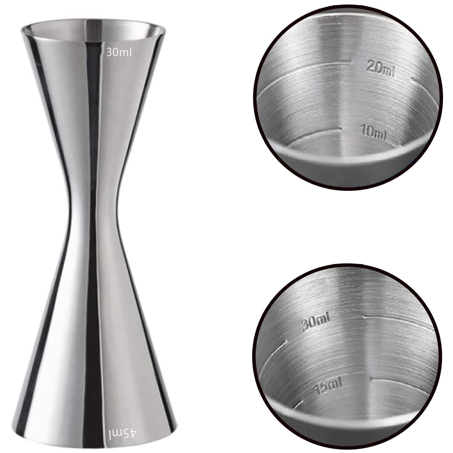 メジャーカップ 目盛りジガーカップ カクテル ステンレス鋼 計量カップ バー用品・道具 一体型鋼計量カップ シルバー (30ml/45ml)