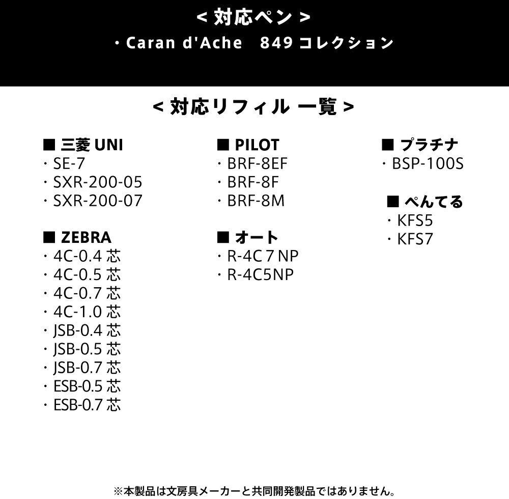 カランダッシュ・849コレクションタイプが新登場。ボールペンのリフィルをお好みのリフィルに交換できるカスタムアイテム。 ペンのデザインはそのままに中身をカスタムする優れモノ。 正規のリフィルは値段が高い、書き味が今ひとつ、文字が太いなどの不満を解消します。対応リフィルは別売りとなります。
