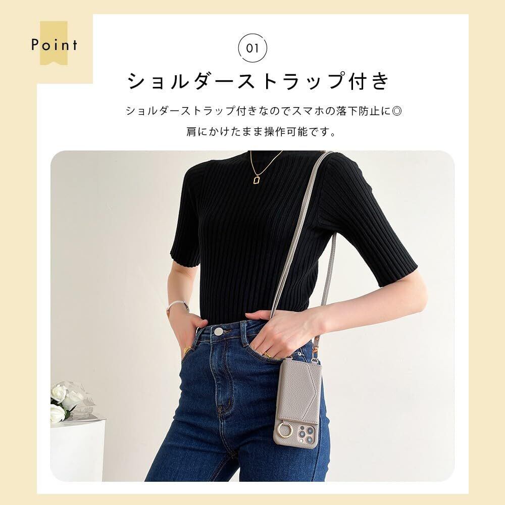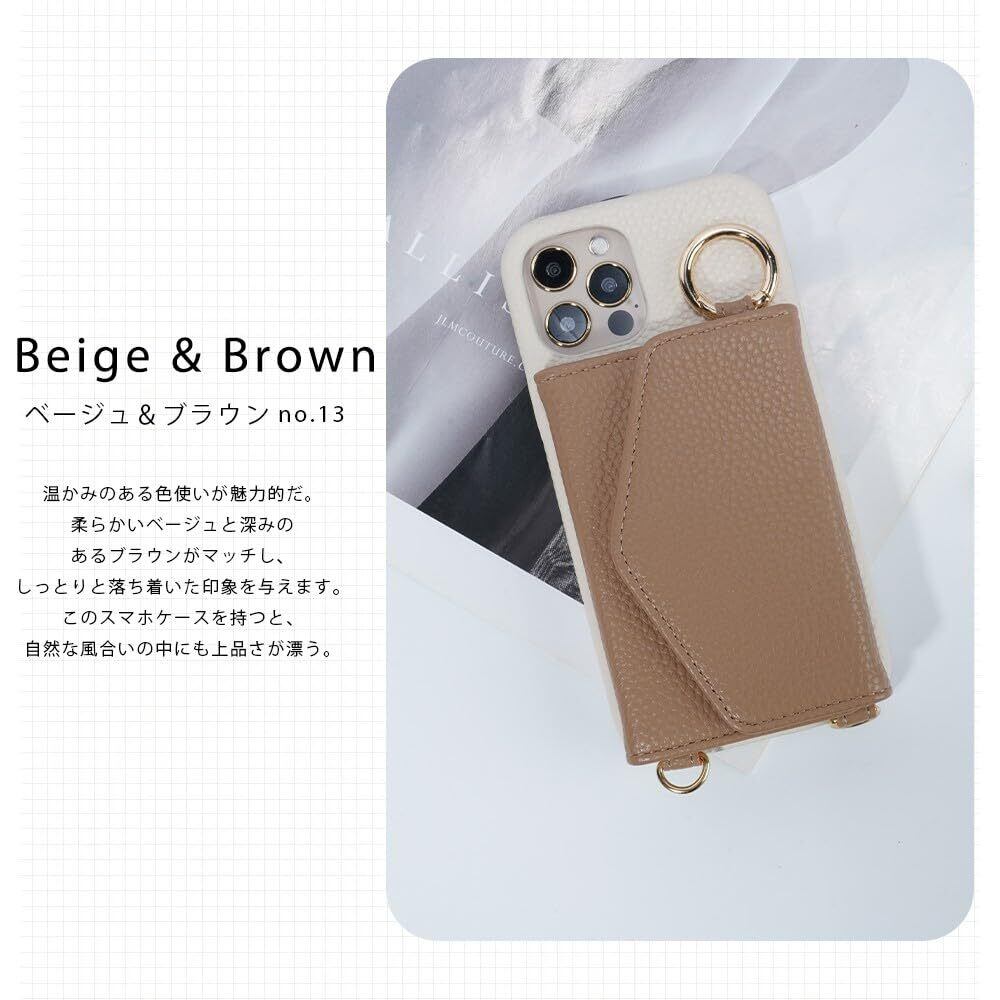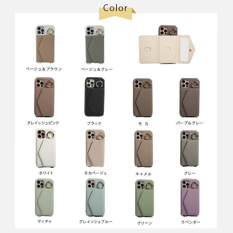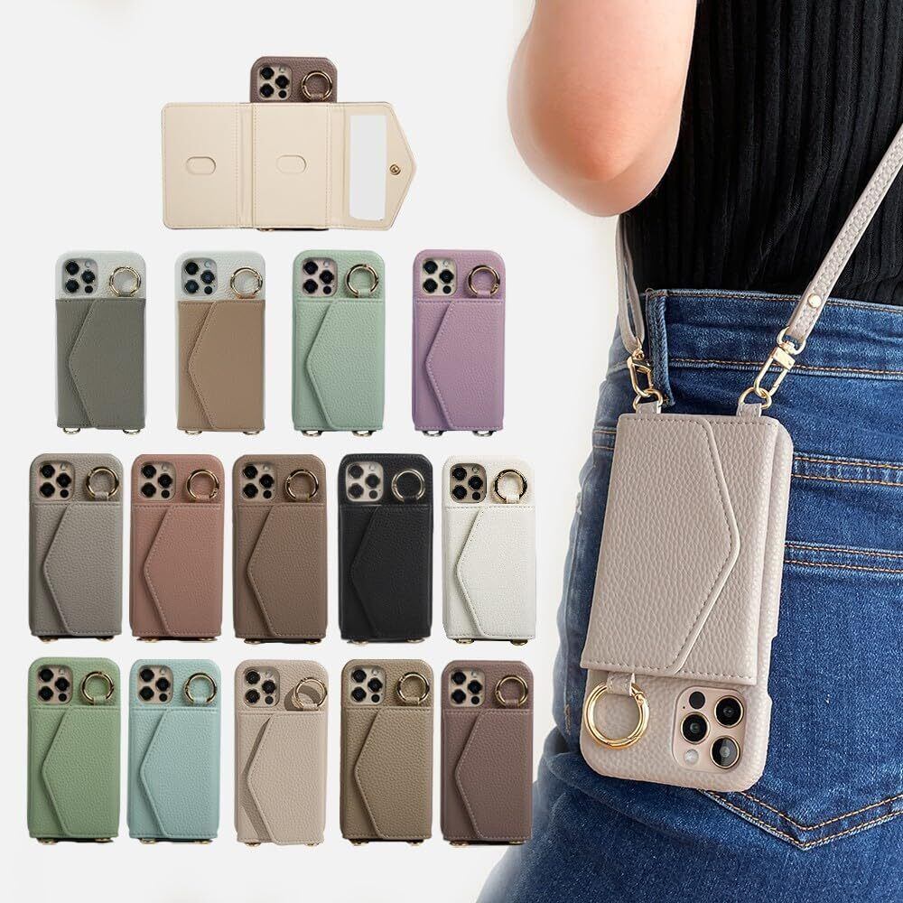 LIISEA ケース iphone用の 12/iphone12 pro スマホケース ショルダー タイプ 携帯ケース 背面手帳型 背面カード収納 鏡付き 肩掛け 斜めかけ リング付き ミラー付き カード収納 背面ポケット 財布付き マグネットなし レザー ストラップ付き