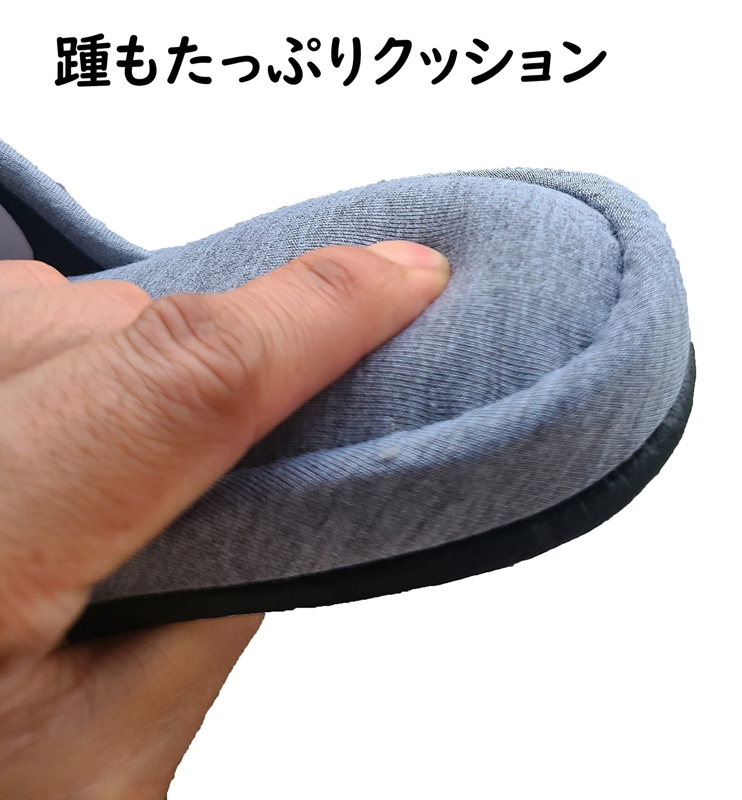 飽きのこないシンプルなスリッパ!、外側の生地はコットン素材でオールシーズン使えます。インソールには低反発素材をつま先からかかと全体に敷き、履き心地グレードアップ。