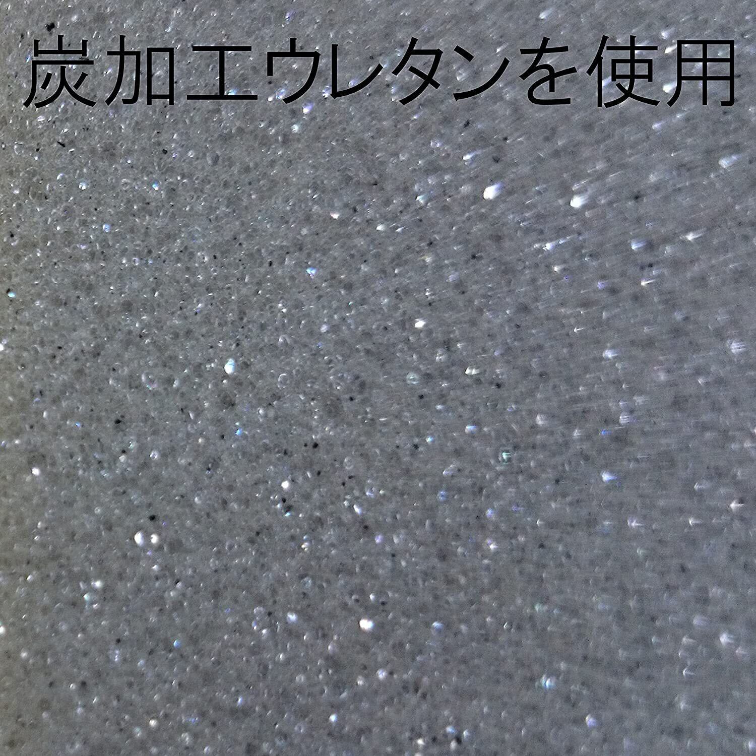 中材クッションに炭加工シートを配置し、ニオイ対策も加えました。クッションが足をしっかりホールドしてくれるので、歩きやすく、履き心地も快適です。