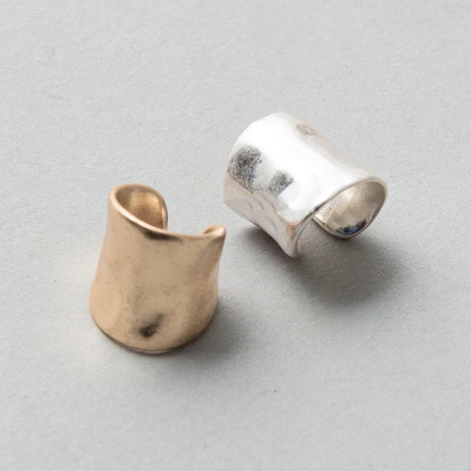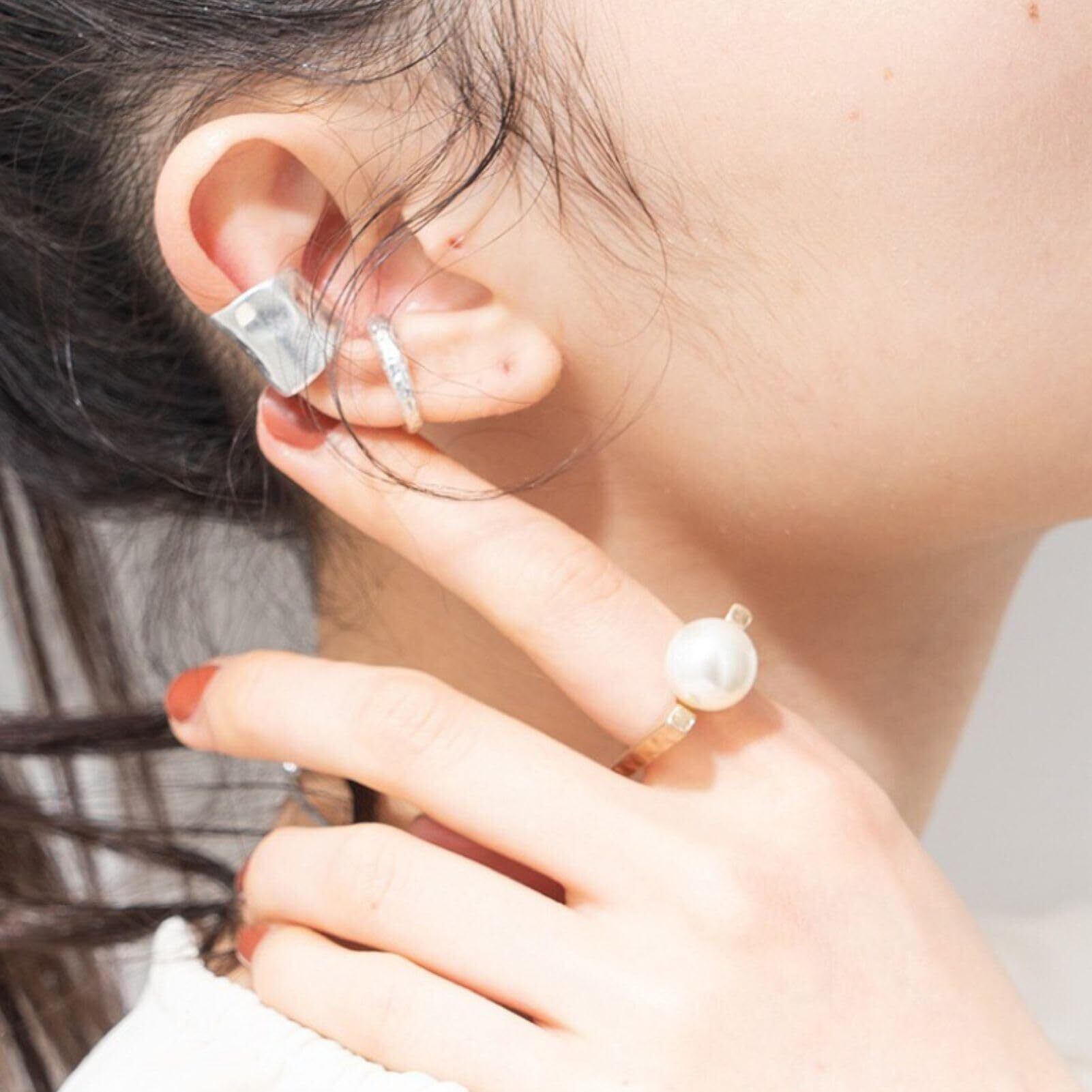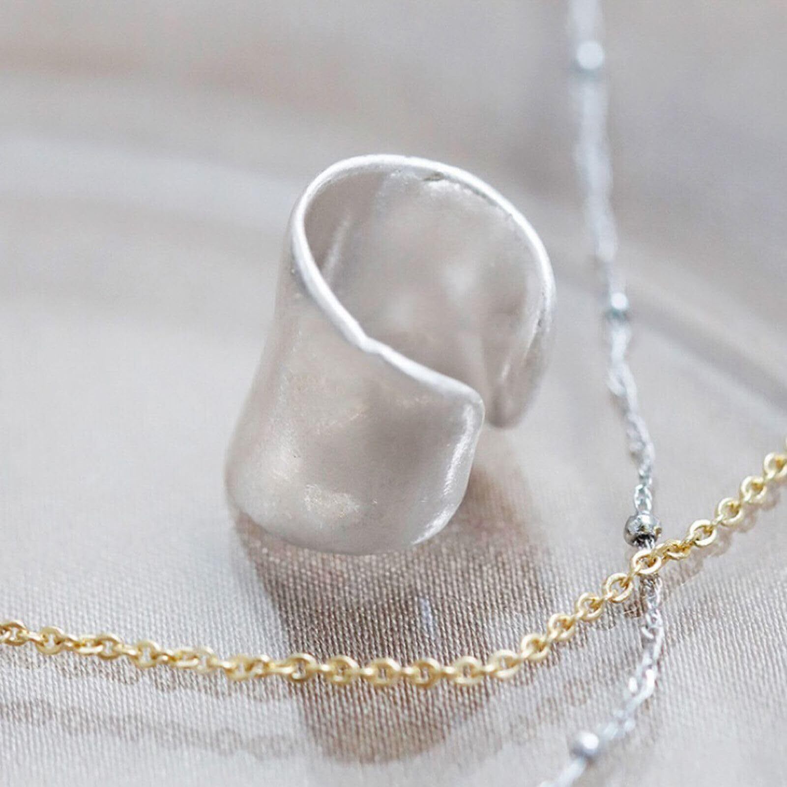 ワイドな幅広のイヤーカフに 歪な表面がさり気なくお洒落